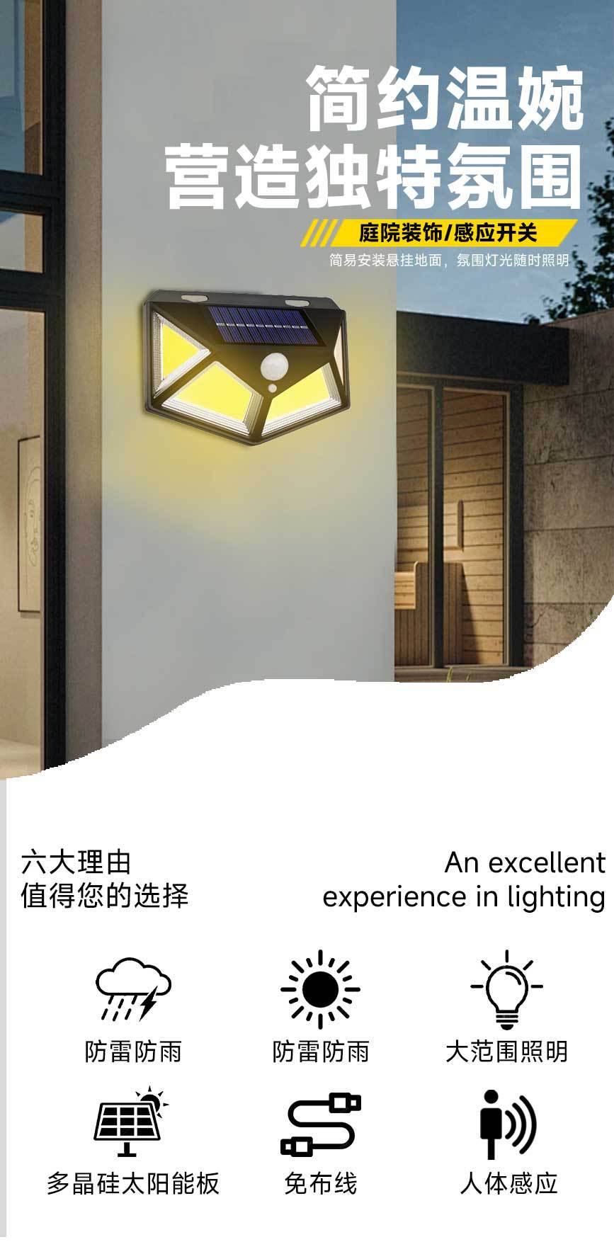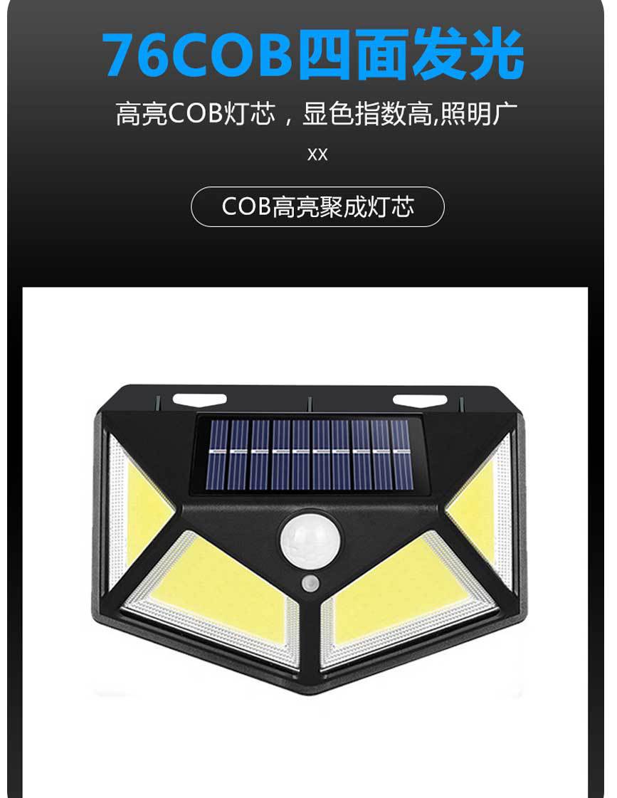 新款太阳能庭院灯 户外四面壁灯人体感应灯家用壁灯防水超亮