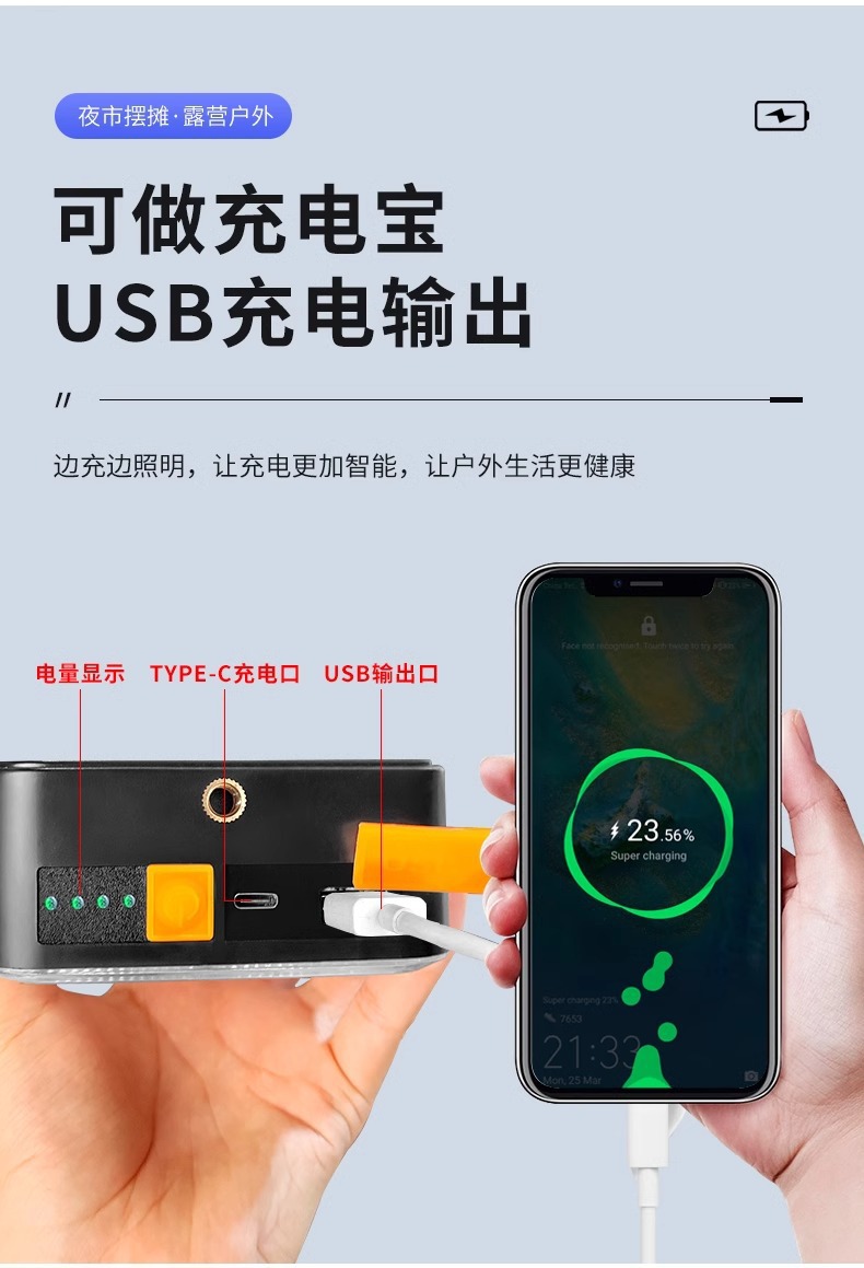新款太阳能灯户外地摊LED充电摆摊夜市灯停电应急照明