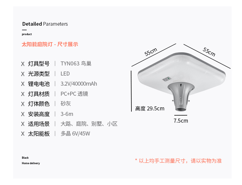 户外太阳能景观方灯LED方形灯柱庭院灯路灯小区园林太阳能板