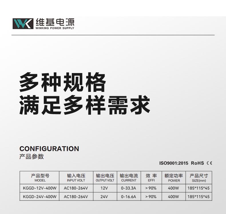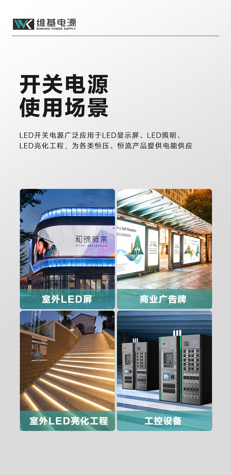 广东维基科技有限公司是集电源、开关电源于一体的研发、生产、销售的科技型企业.公司主营产品包含:电源,开关电源,LED电源,LED驱动电源,防水电源,防雨电源,LED超薄电源,3D打印机电源,橱柜电源,灯箱电源,显示屏电源,普通室内电源等.产品广泛用于LED照明、LED显示屏、安防监控设备、工业自控系统等多领域