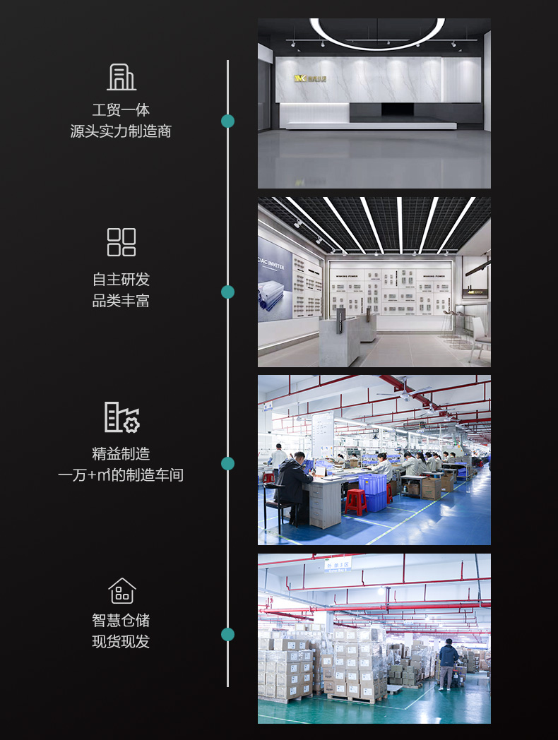 广东维基科技有限公司是一家集科研、生产、销售于一体的科技型生产企业。公司主营各类LED开关电源(普通室内电源、防水电源、灯箱电源、适配器等9个系列产品)。产品广泛用于LED照明、LED显示屏、安防监控设备、工业自控系统等多领域。