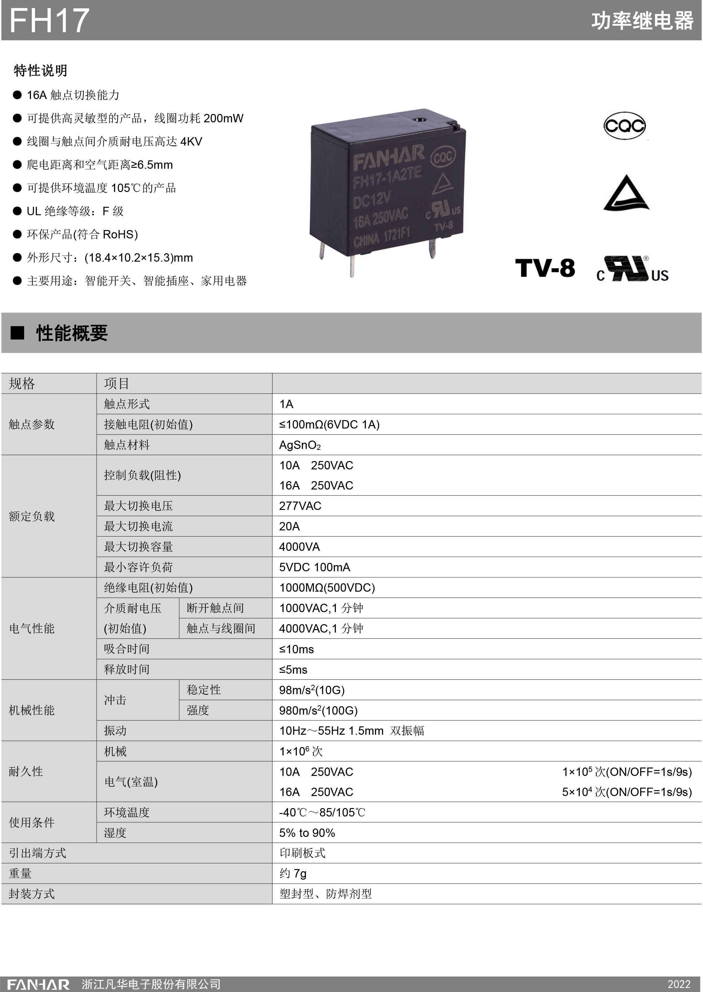 浙江凡华电子股份有限公司成立于2014年,是一家专业的继电器研发、制造和销售为一体的国家高新技术企业。目前已量产的继电器品类有五十几个系列、几百种规格;产品广泛应用于智能家居(智能开关、插座)、工业控制(变频器、伺服、PLC、电梯、电源)、智能仪表(单、三相电表)、新能源(光伏逆变器、储能、充电桩)等领域。 公司自建标准厂房29000平方,其中10万级洁净车间12000平方;公司目前职工人数400人,30条继电器生产线(其中20条全自动化生产线),继电器年产可达到1.5亿只,产品40%出口到二十余个国家;通过ISO9001质量管理体系、ISO14001环境管理体系,产品取得UL、TUV、CQC认证,并满足欧盟Rohs、Reach指令要求。 公司陆续取得国家高新技术企业、省级研发中心、专精特新中小企业等称号。科技创新是企业生存和发展的动力,公司已获得国家实用新型及发明专利四十余项,公司每年研发投入在销售额的5~8%。