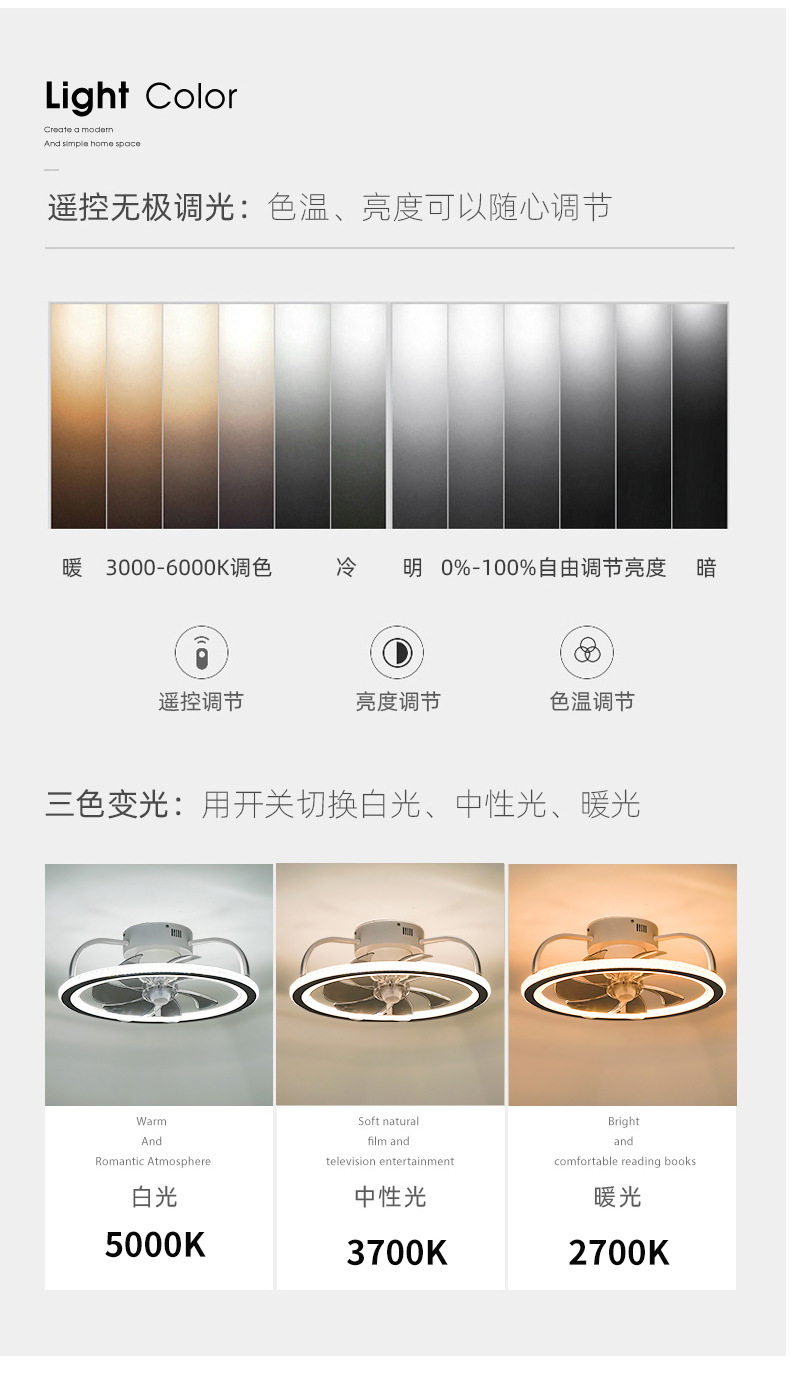全光谱风扇灯家用 现代简约卧室吸顶灯电风扇一体吊扇灯