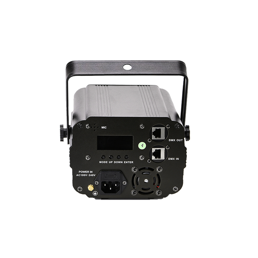 工作电压:AC100-240V 50/60Hz功 率:60W激光功率:330mw-1800mw激光波长:绿光:520nm 红光:638nm 蓝光:450nm调制信号:TTL调制激光颜色:全彩色扫描系统:15-20kpps振镜扫描角度:±20°激光图案:15组图案库,1900个图案冷却系统:风机强制冷却工作环境: 室内(10-35°)通道模式:6/34CHS