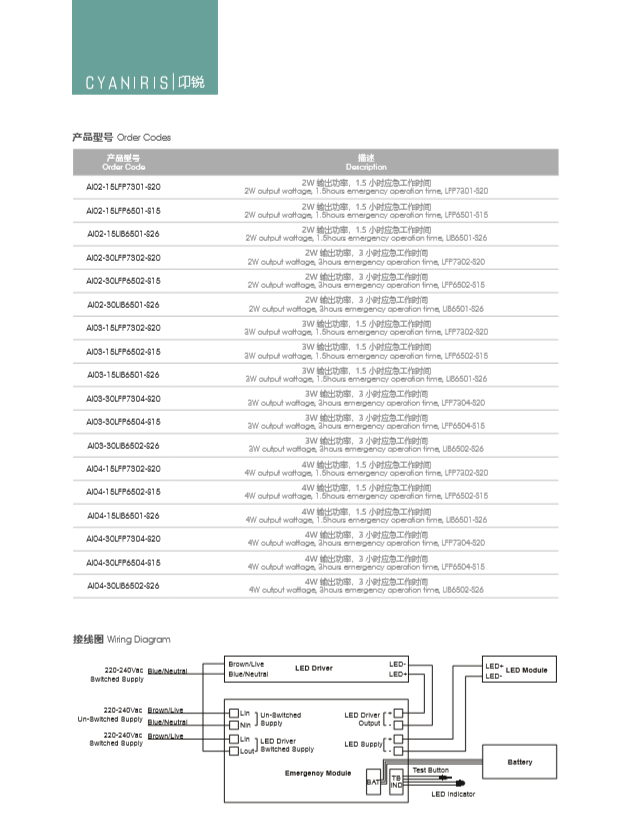 LED应急驱动应急电源应急包CYANIRIS卬锐