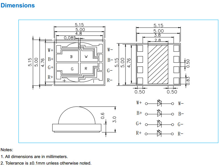 产品名称:全彩大功率5050灯珠,全彩四合一灯珠