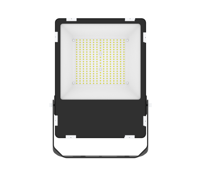 泛光灯加装设有多个散热片的散热器能加快LED灯珠工作时产生的热量的散发,降低光源组件工作的时的温度,从而延长了光源组件的使用寿命。
