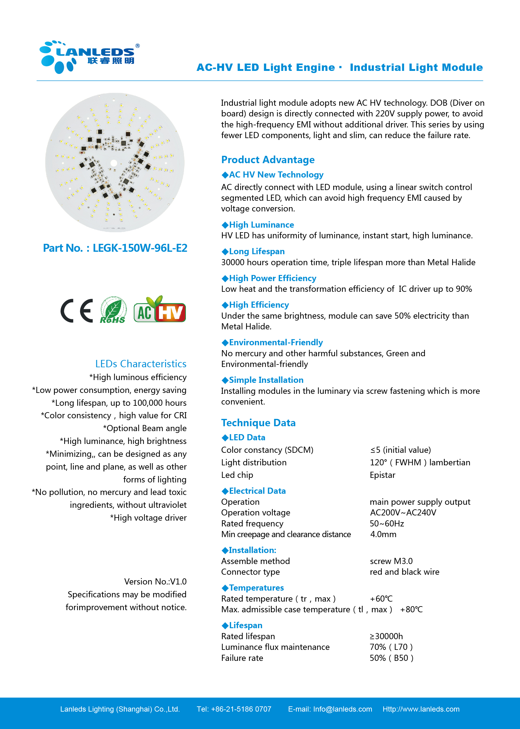 工矿灯/高棚灯模组,线性高压四段方案,150W LED光引擎,LM80 LED,欢迎定制