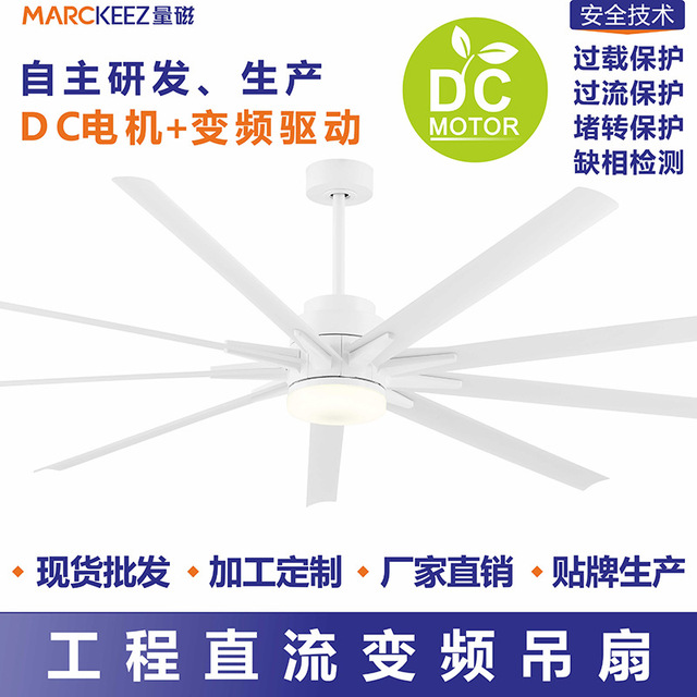 量磁电气.永磁无刷变频商用大型吊扇灯白色ABS静音工程大风扇