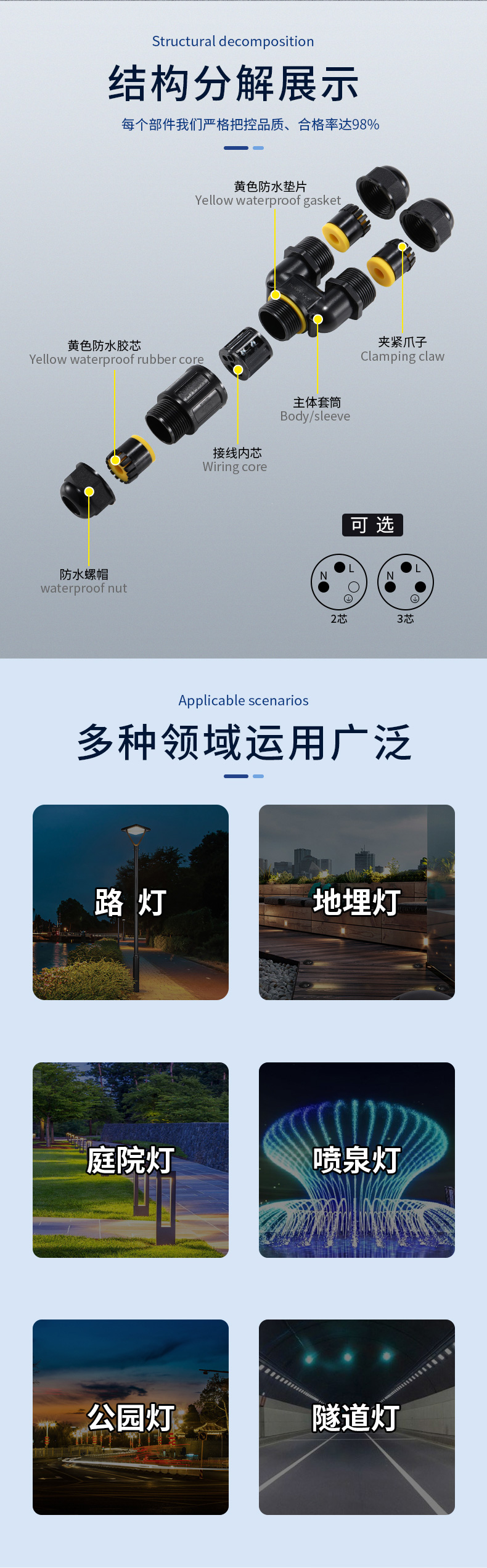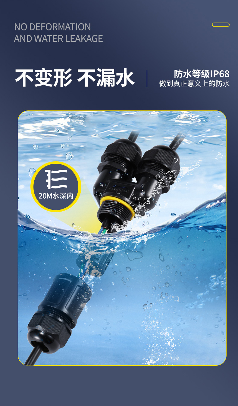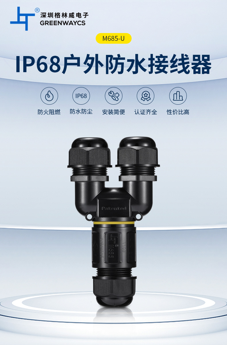 现货批发M25锁螺丝防水连接器 户外照明电子三通3芯连接器