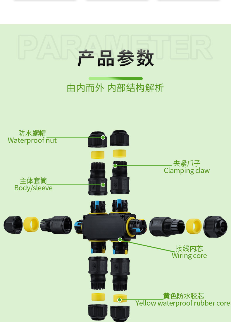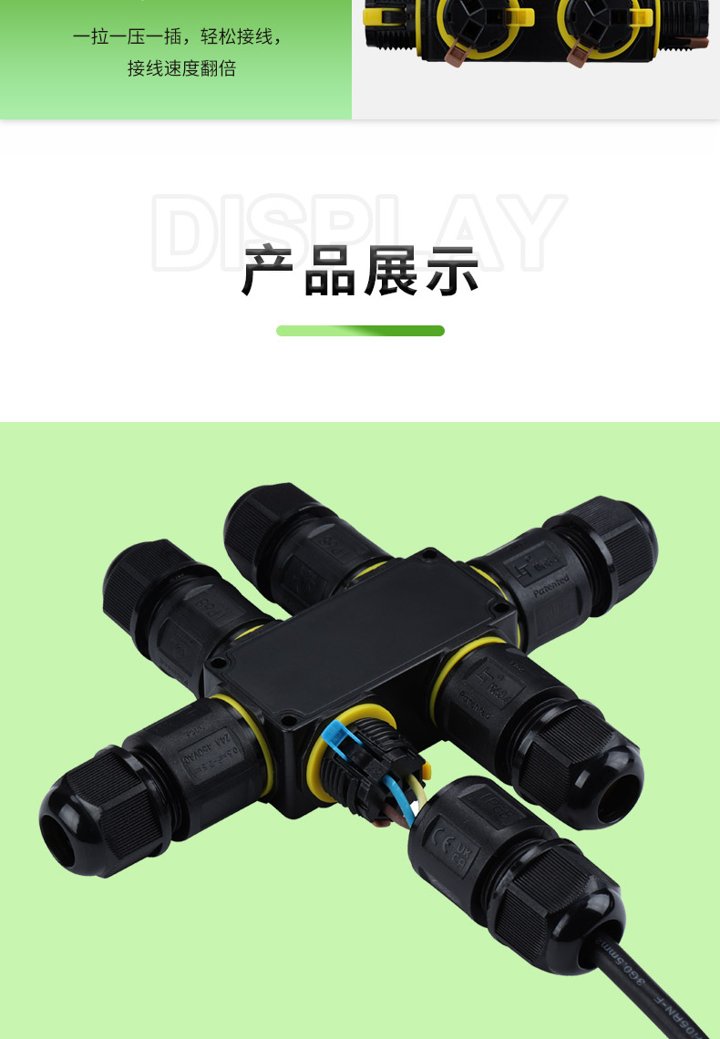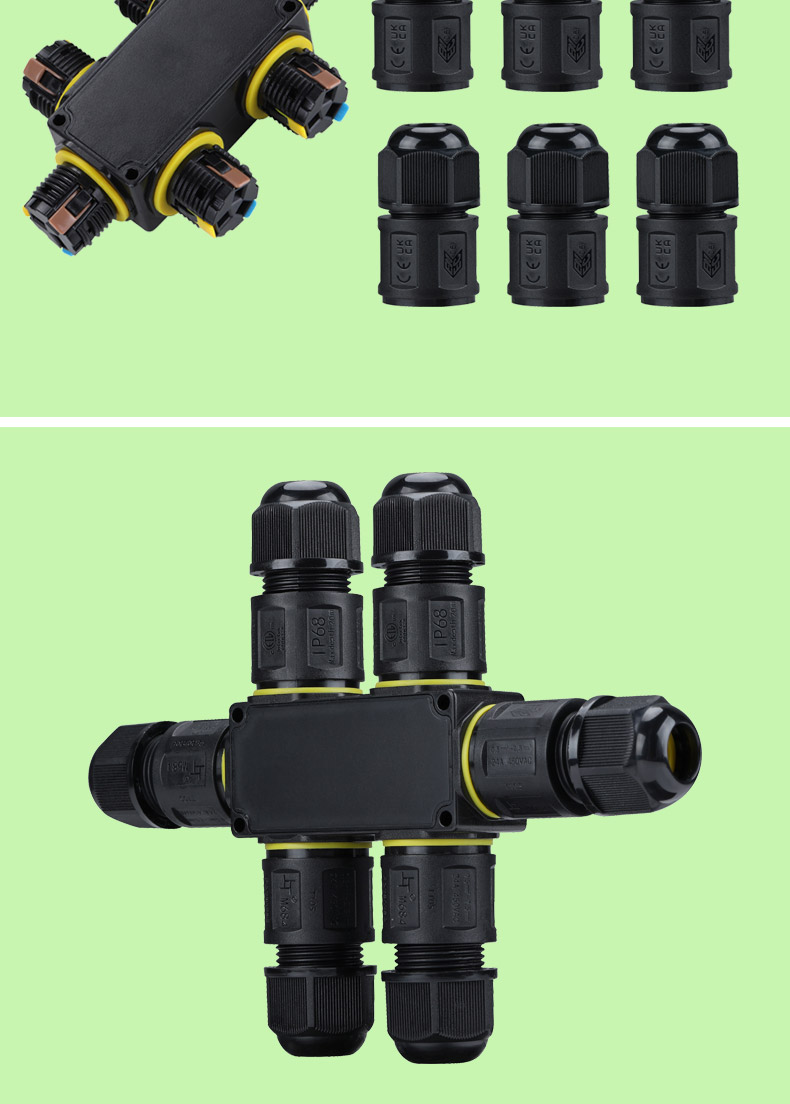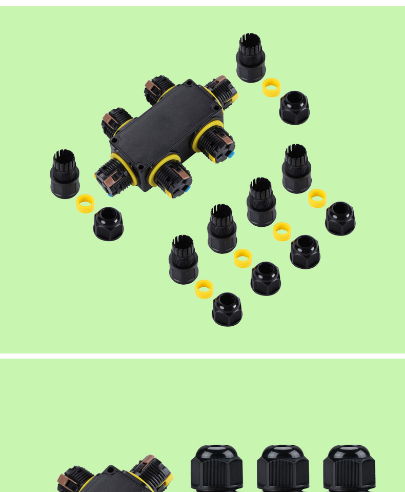 格林威M20三进三出连接器 免螺丝照明端子防水接线器