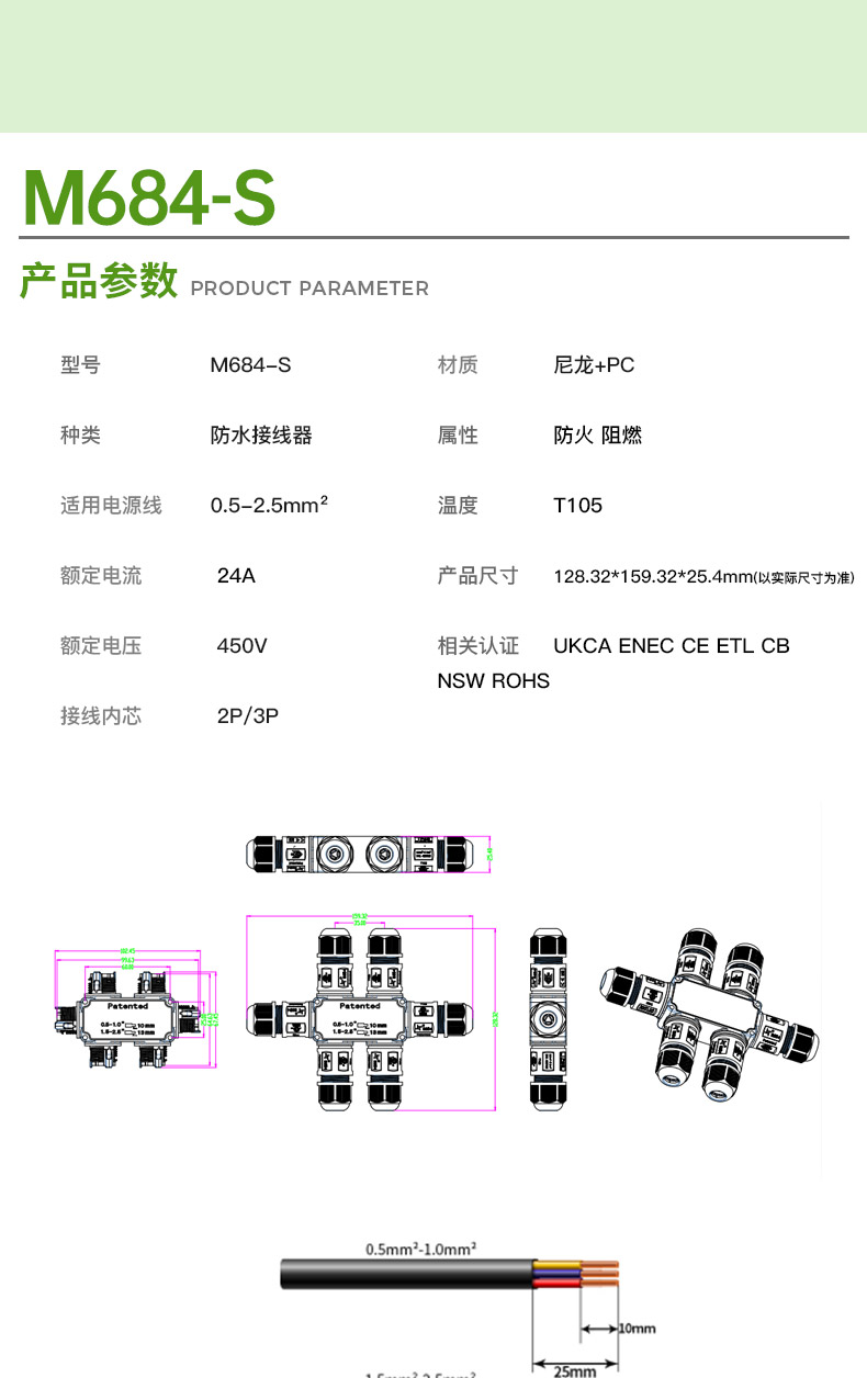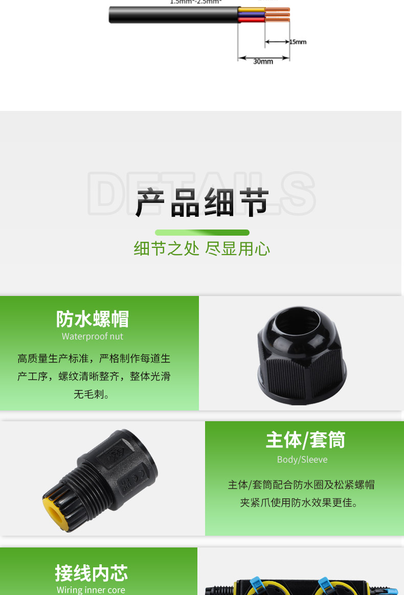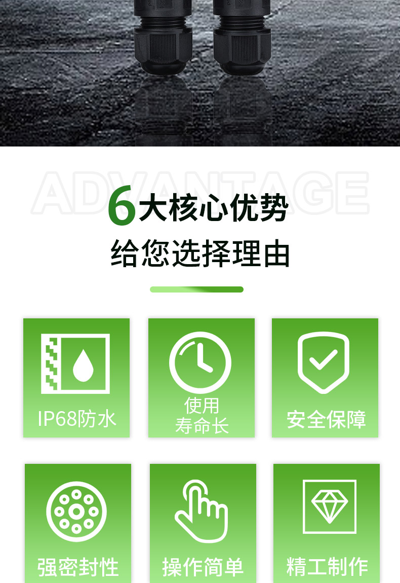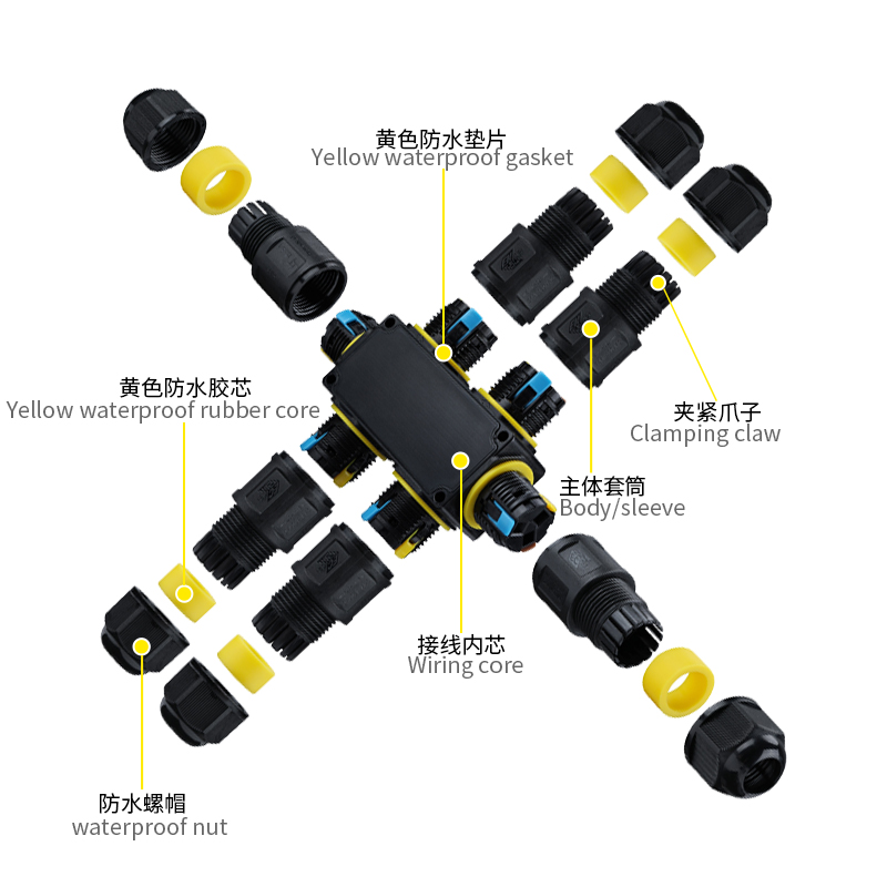 格林威M20三进三出连接器 免螺丝照明端子防水接线器