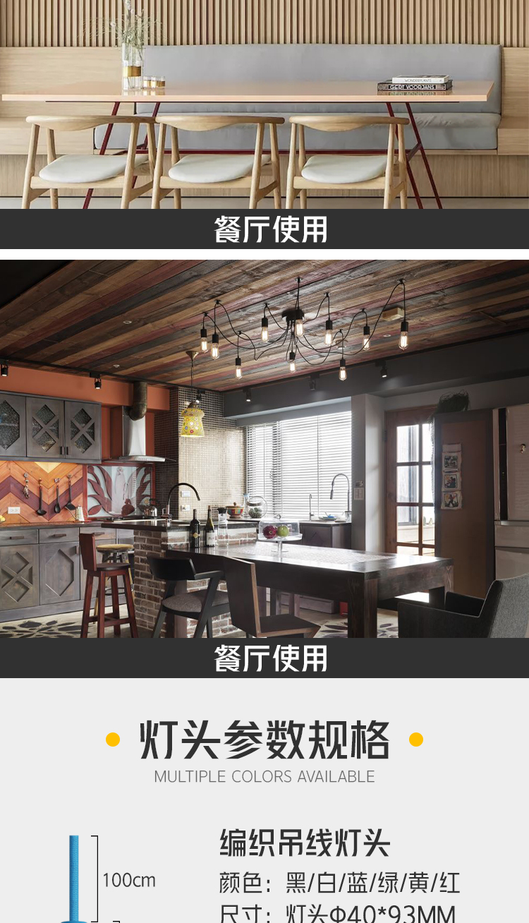爱迪生灯泡仿复古吊灯头e27大螺口灯座餐厅酒吧带线吊搭配灯座