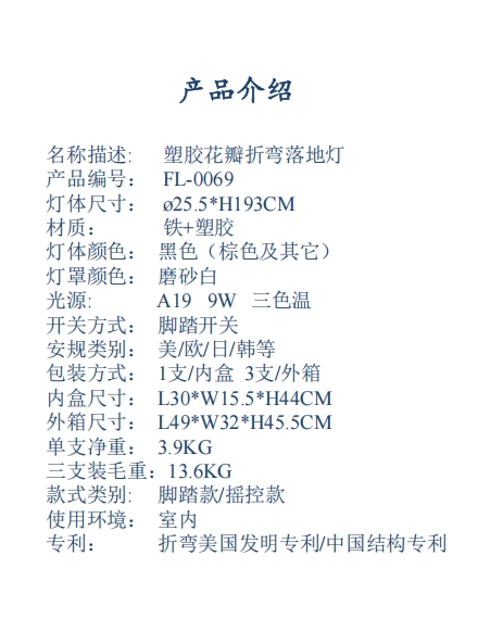 塑胶花瓣折弯落地灯FL-0069