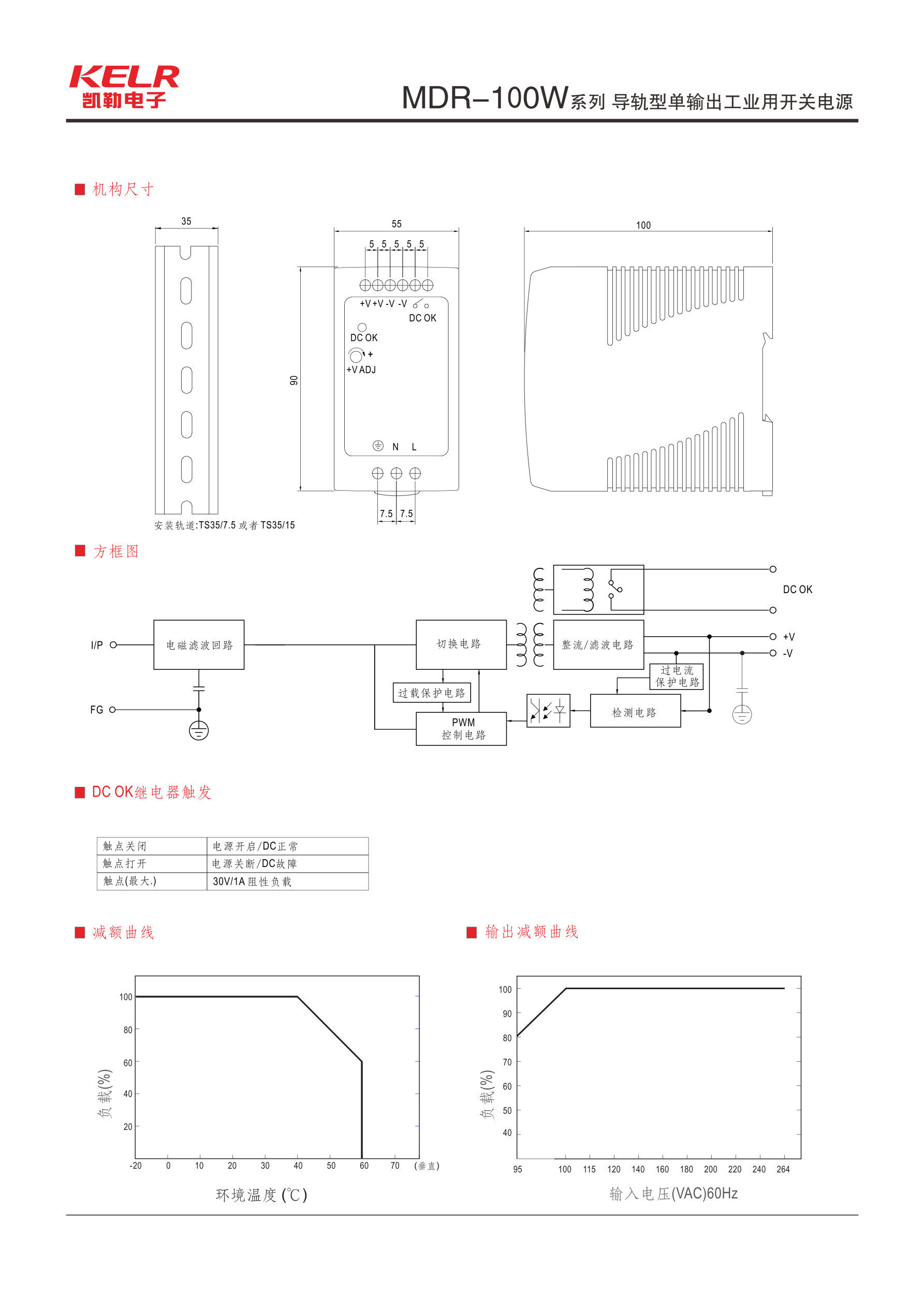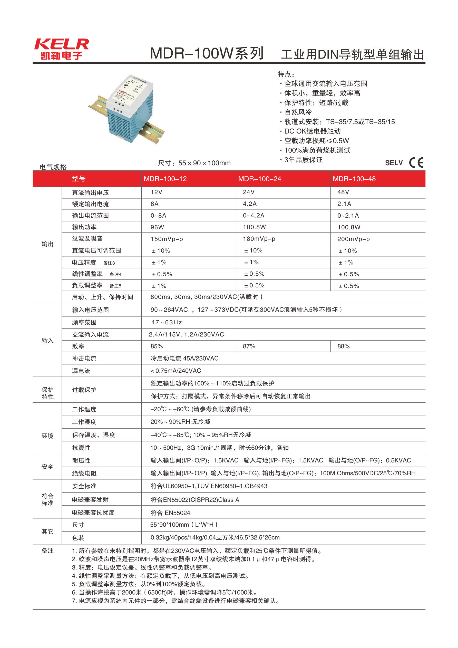 MDR导轨系列恒压恒流开关电源 MDR-100W