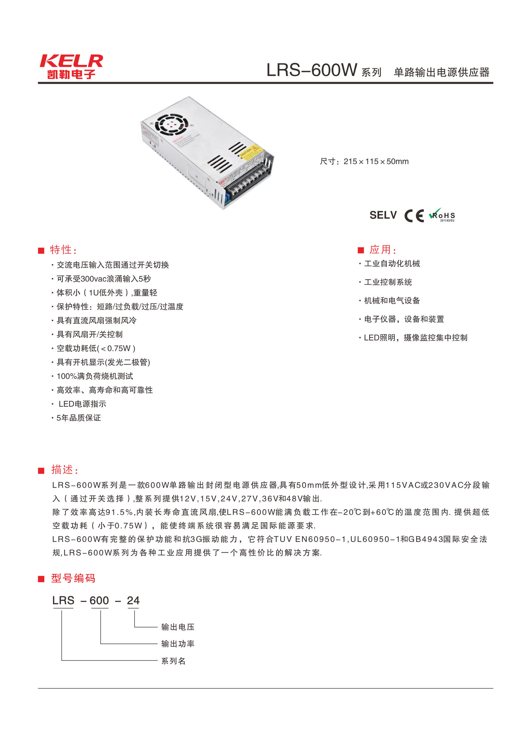 LRS系列工控恒压恒流开关电源LRS-600W