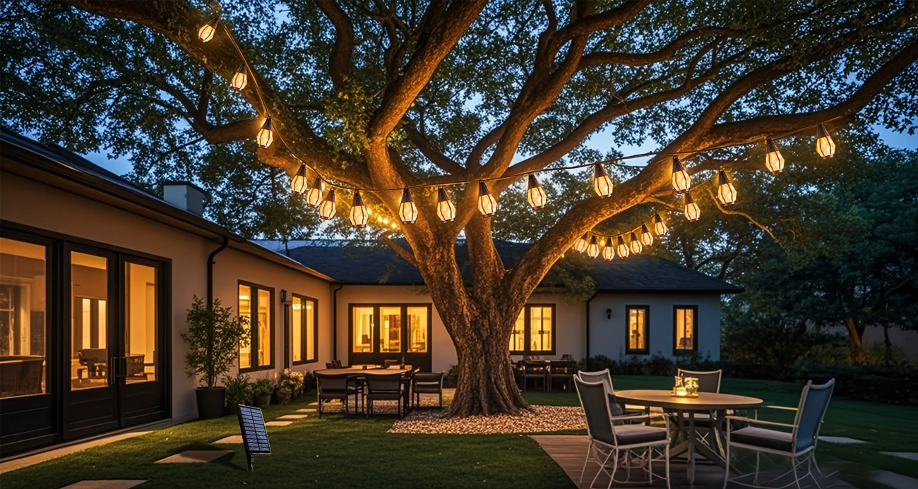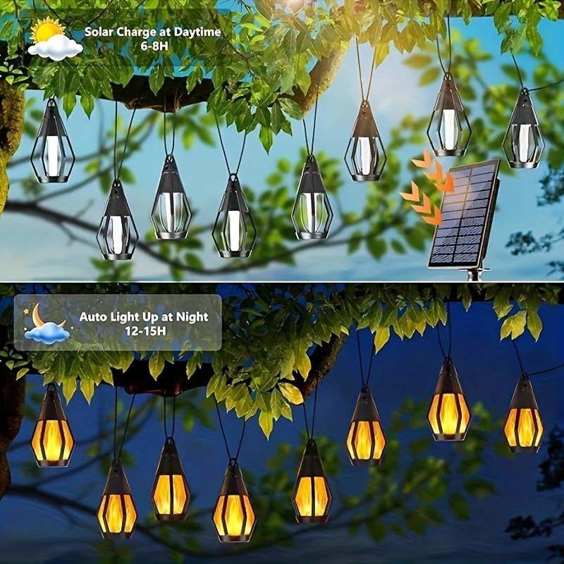 跨境新款太阳能灯串火焰灯户外防水感应花园庭院露营氛围装饰照明