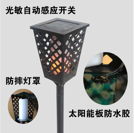 跨境太阳能方形火焰灯户外防水火把灯感应灯花园庭院装饰草坪灯