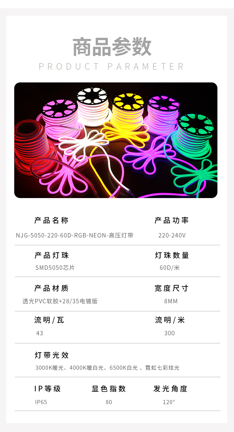 • 产品型号 5050-220-60D-RGB-NEON