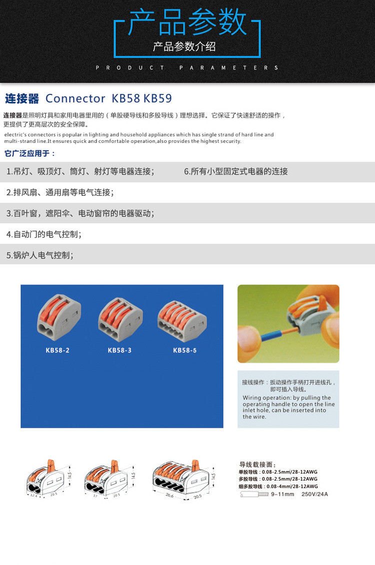 高超 快速接线端子KB58-2P无螺丝端子CE认证 环保阻燃
