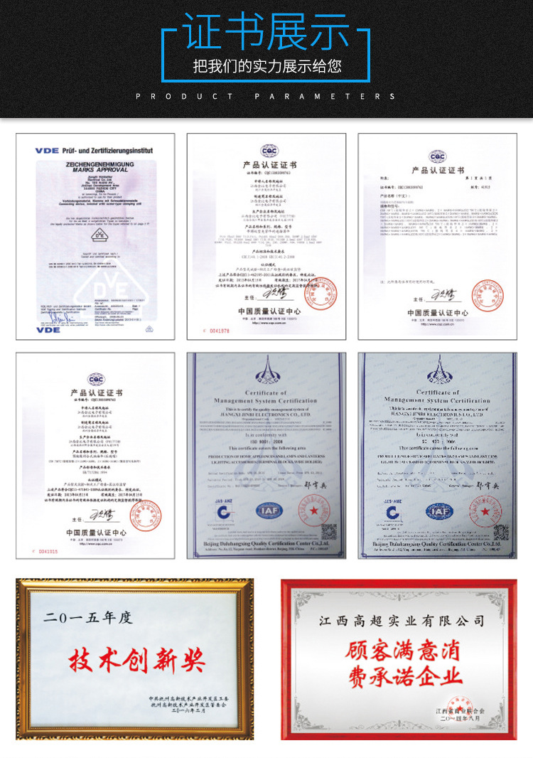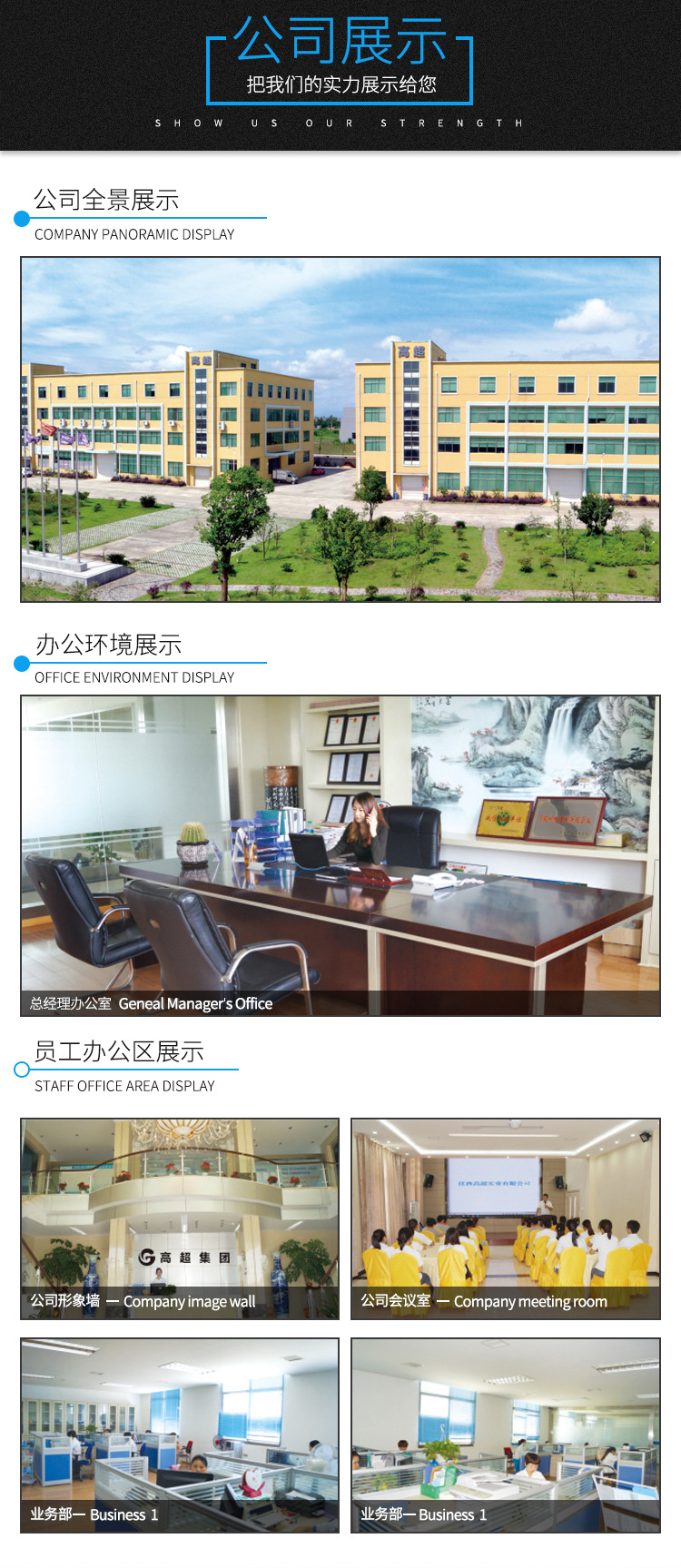 高超实业创建于1999年,是厂家研究、生产、直销(照明灯具及家用电器上用的)各类配线器材和的大型企业;公司分别在浙江慈溪,广东顺德,江西抚州设有工厂,占地面积80000平方米,工厂面积50000平方米,员工人数约600人,其中研发部和品质部有120余人。公司一贯以“市场为导向,客户为中心,质量为生命”的经营理念,为降低成本,更好的管控产品质量,携手团队共赢,公司成立自己的模具部、注塑部、五金冲压和五金压铸部 ,引进了全自动组装生产设备,并执行了系统化的管理模式。公司通过了ISO9001质量管理体系和ISO14001环境管理体系认证,产品通过了UL VDE CE CQC ROHS等安规认证。高超使命:为客户提供物美价廉的配件产品,携手团队共赢;高超愿景:成为国内配线器材行业领先品牌高超价值观:诚信 创新 感恩 共赢