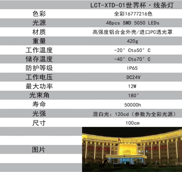> 灯具 > 户外灯具 > 洗墙灯/条形投光灯/线条灯 >LCT-XTD-01 世界杯·线条灯