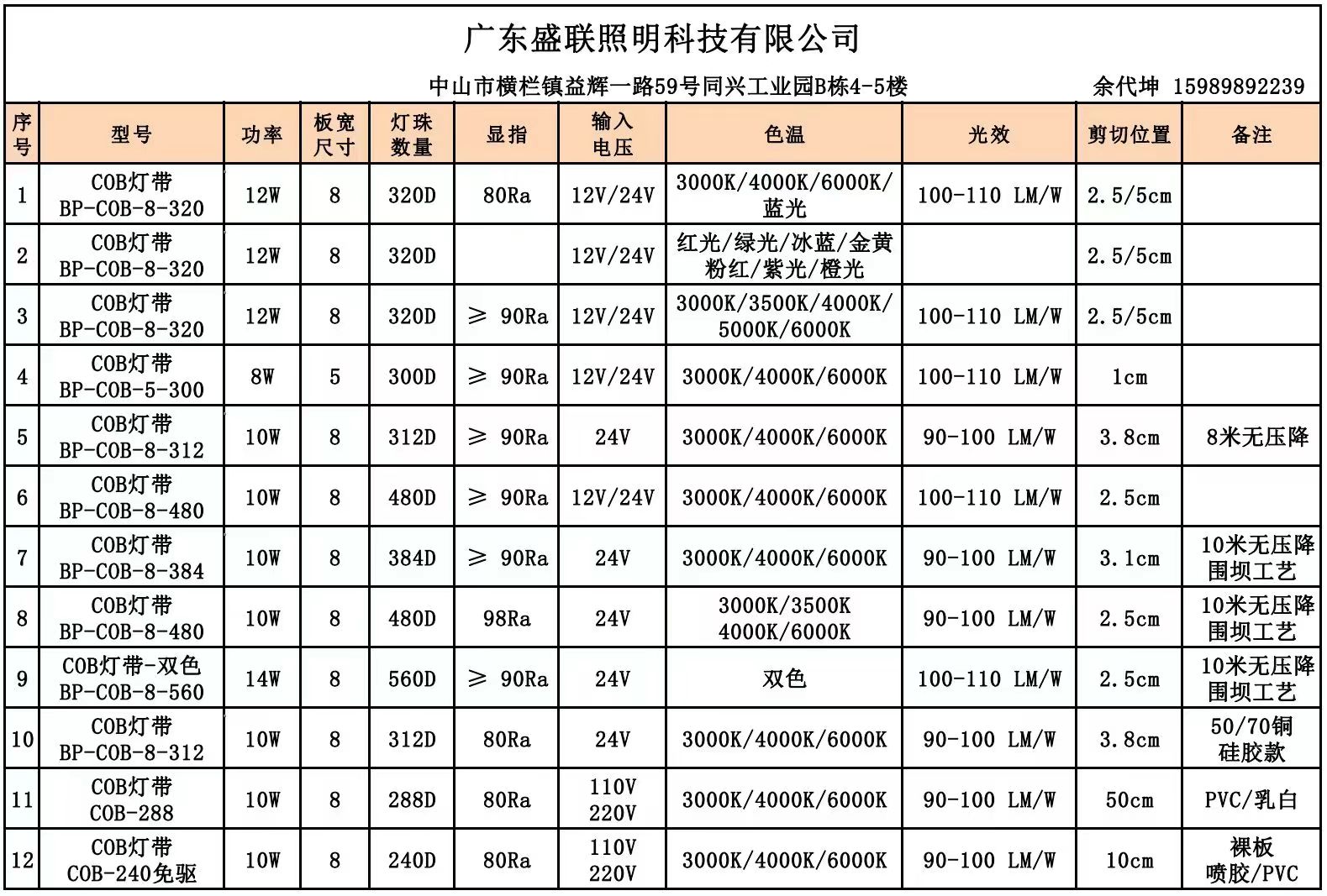 盛联照明COB灯带,顶尖工艺和设备,印刷锡膏+芯片固晶,完全杜绝虚焊死灯,25条全自动产线(128台固晶机),月产能500万米,众多一线品牌都有合作,敬请移步瑞丰门市(13栋12号)或横栏工厂咨询了解。