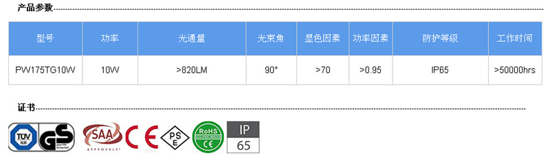 • 认证 CE、ROHS、TUV、GS、PSE、SAA