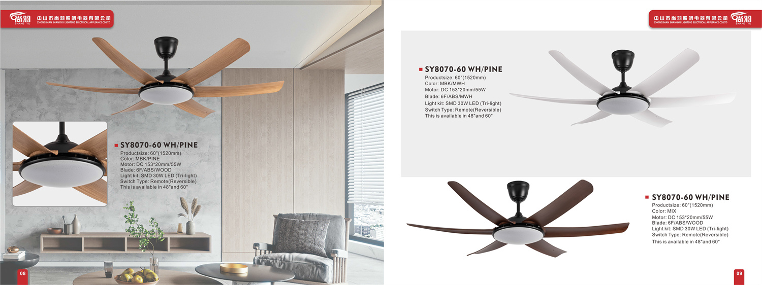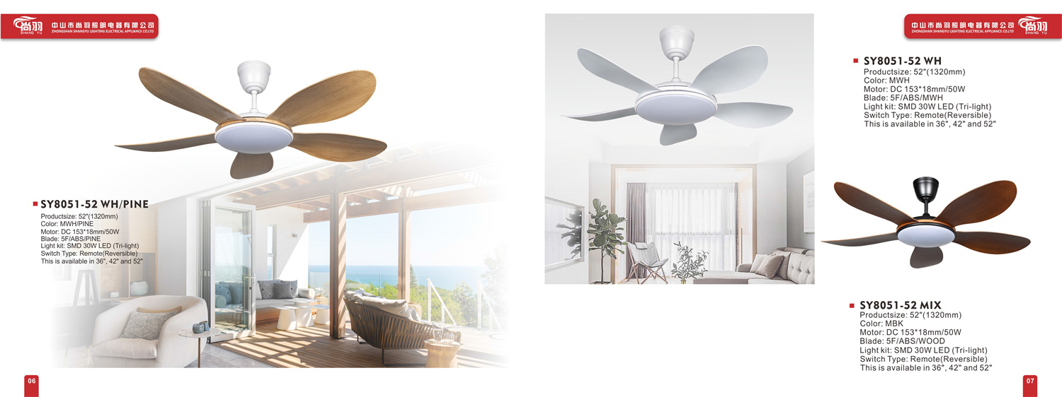 中山市尚羽照明电器有限公司专业生产风扇灯、吊扇灯、装饰吊扇灯、风扇吊灯、中式风扇灯、欧式风扇灯、铁叶吊扇灯、餐厅风扇灯,公司创办于2010年,是一家专业开发,设计,制造于一体的厂家。厂房占地面积5000多平方米,本厂拥有冲压成型、车床、铣床部件、注塑、吸塑、喷塑工艺等生产线、各种电子元件检测仪器等设备和各种工序的专业技术人才。拥有吊扇灯独立展厅,宽敞舒适,品种多样。本厂风扇灯产品风格独特、高贵典雅、集照明、调温、装饰于一体。是古典与现代组合的环保产品。 本厂本着“敬业、务实、创新、诚信”的企业精神,以质量为保证、以顾客为中心,以信誉求发展、以市场为导向的宗旨,满足顾客需求为目标,公司产品已获国家强制3C认证、CE。产品远销欧美、中东、东南亚等国家和地区。 我们衷心地欢迎国内外客户来涵来电洽谈订购!