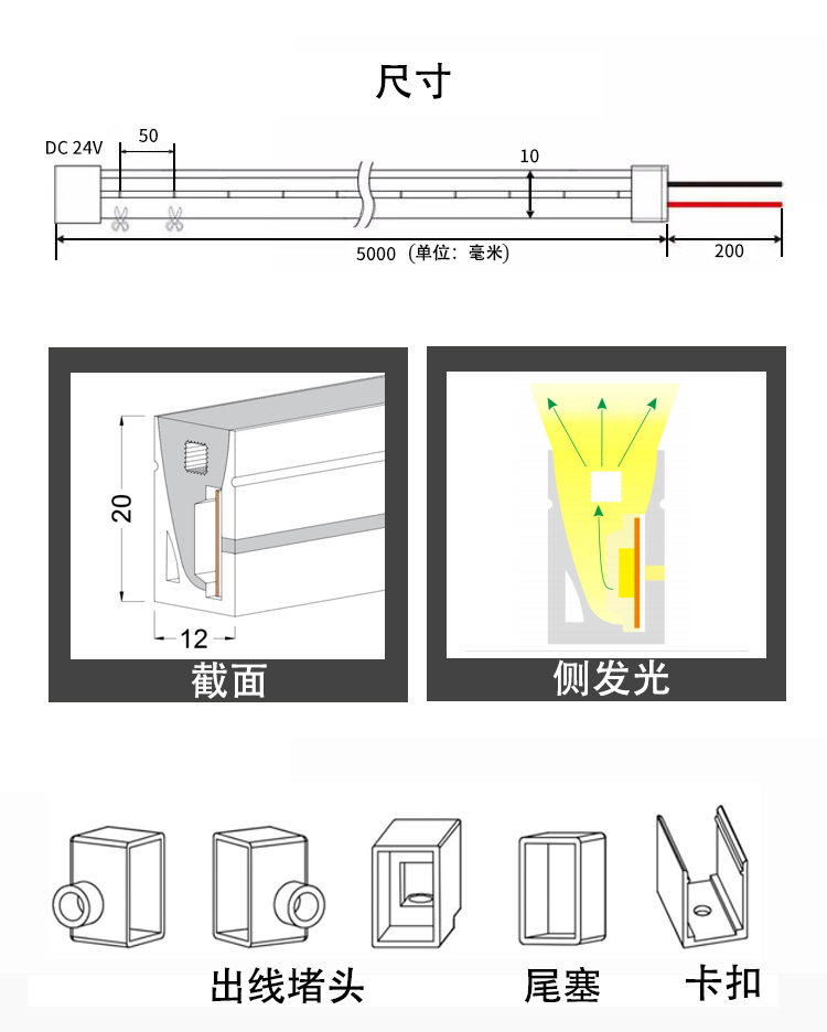 1220侧发光柔性硅胶可弯曲线性灯带户外防水装饰