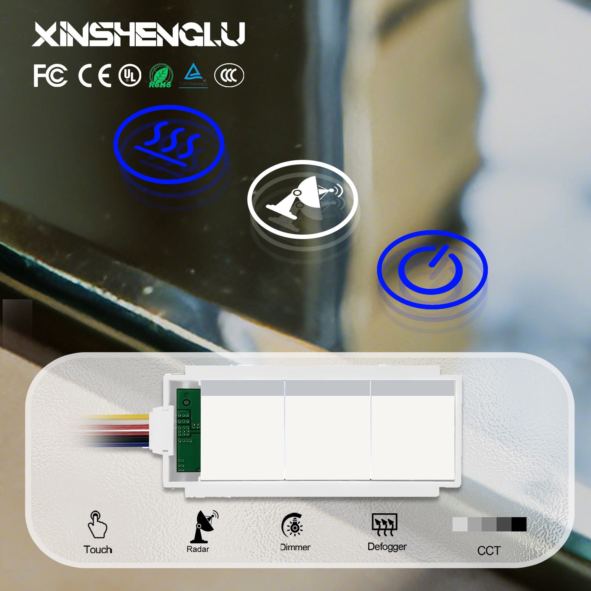 将雷达感应(1-3米)、触摸调光、防雾加热及色温调节功能集成于一个紧凑模块中。与多组件方案相比,组装成本降低 25%。