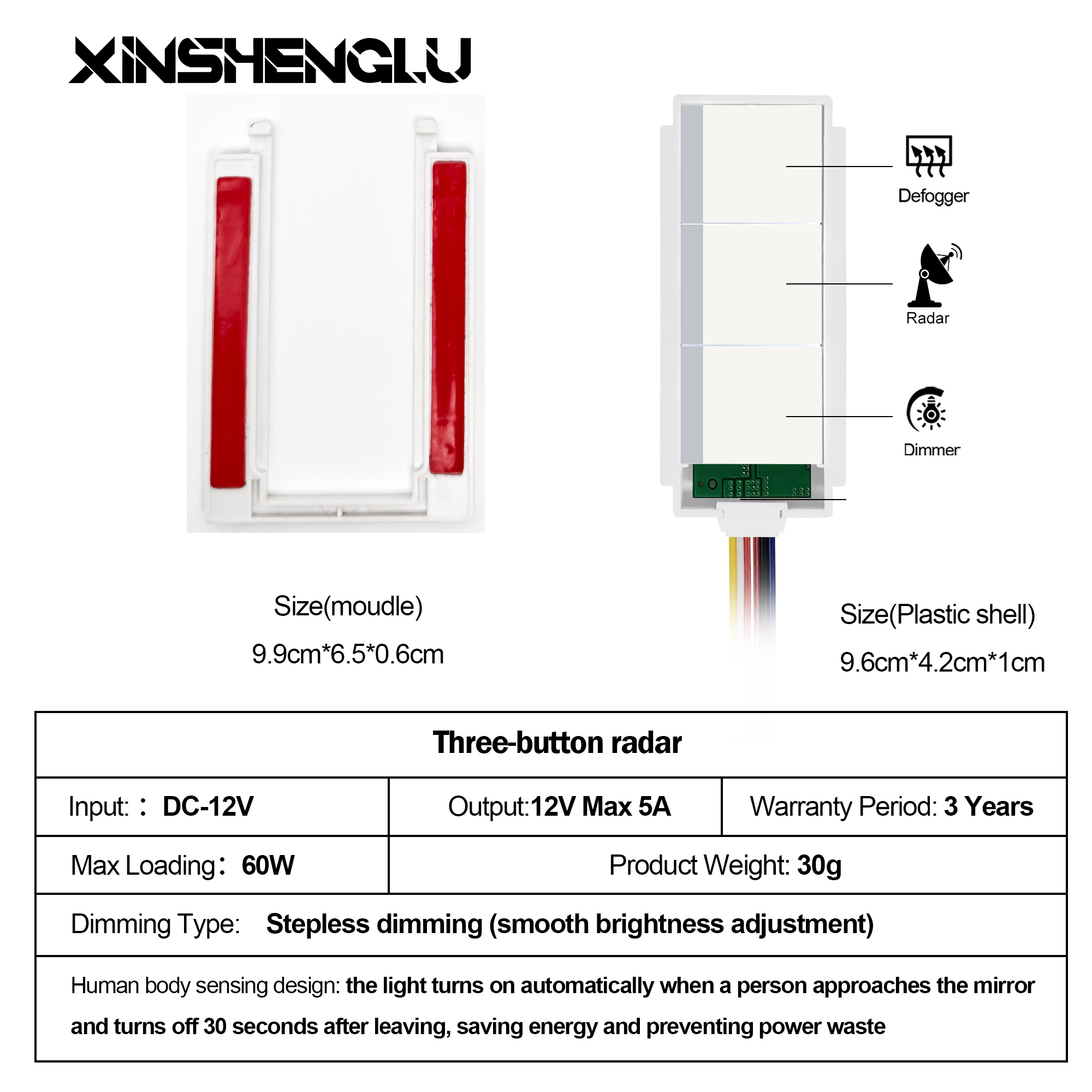 雷达除雾双键蓝牙感应器