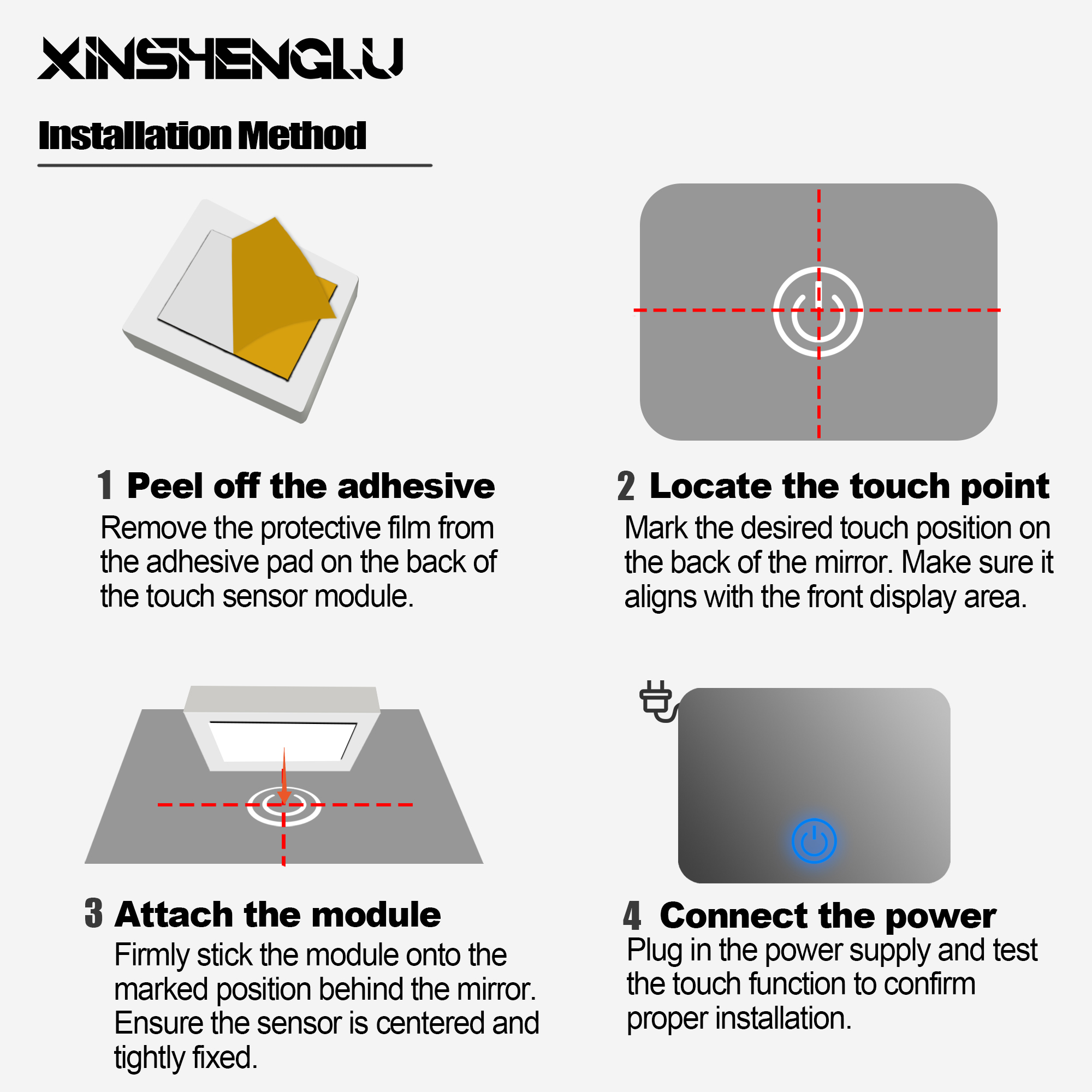 杭州新升路智能科技有限公司专注于智能家庭配件的研发、生产、销售,包括智能镜面触摸开关、橱柜传感器和无线充电解决方案。我们拥有自己的工厂、专业的设计团队以及严格的生产和质量控制流程,确保产品的高品质。 我们的产品系列包括镜面触摸开关、LED灯带、除雾膜、电源驱动器、橱柜传感器和无线充电器,广泛应用于智能镜子和家具中。我们服务于南美、欧洲和中东市场,当地经销商提供便捷的服务和支持。我们致力于创新和卓越,力求成为智能家庭行业的领先合作伙伴。 Hangzhou Xinshenglu Intelligent Technology Co., Ltd. specializes in the research, development, production,and sales of smart home accessories, including smart mirror touch switches, cabinet sensors, and wireless charging solutions. With our own factory, a professional design team, and strict production and quality control processes, we ensure high-quality products. Our product range includes mirror touch switches, LED light strips, defogging films, power drivers, cabinet sensors, and wireless chargers, widely used in smart mirrors and furniture. We serve markets across South America, Europe, and the Middle East, with local distributors providing convenient services and support.We are committed to innovation and excellence, striving to be a leading partner in the smart home industry.