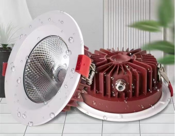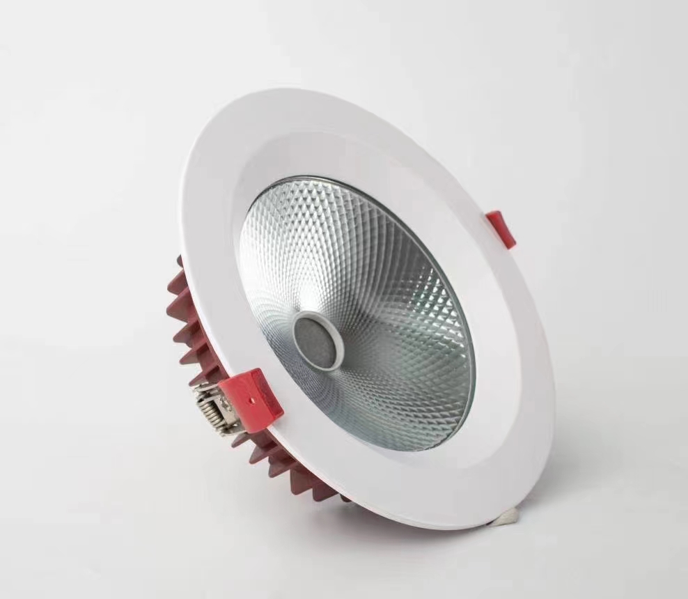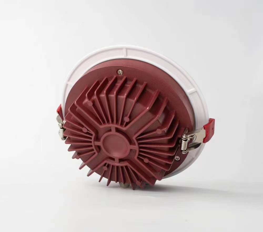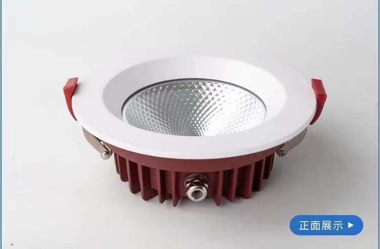 压铸铝材,大底座散热器,可以大幅度降低芯片温度,在安全的情况下保持低温,保护好芯片,从而达到长寿命;大底座散热有一大好处,可以做大功率,满足各大酒店商场的需求。铝材面环,搭配菱格纹90°反光杯,及高透钢化玻璃,光效均匀,透光率高;内置防水胶圈,有效防止水渗透散热器;全部采用高强度,加强加硬优质不锈钢弹簧,易安装,更牢固;出线口采用防水螺丝帽,2.5寸7W,3寸12W,4寸18W,5寸25W,6寸30W,8寸40W,多钟规格可选,应用不同场景需求。