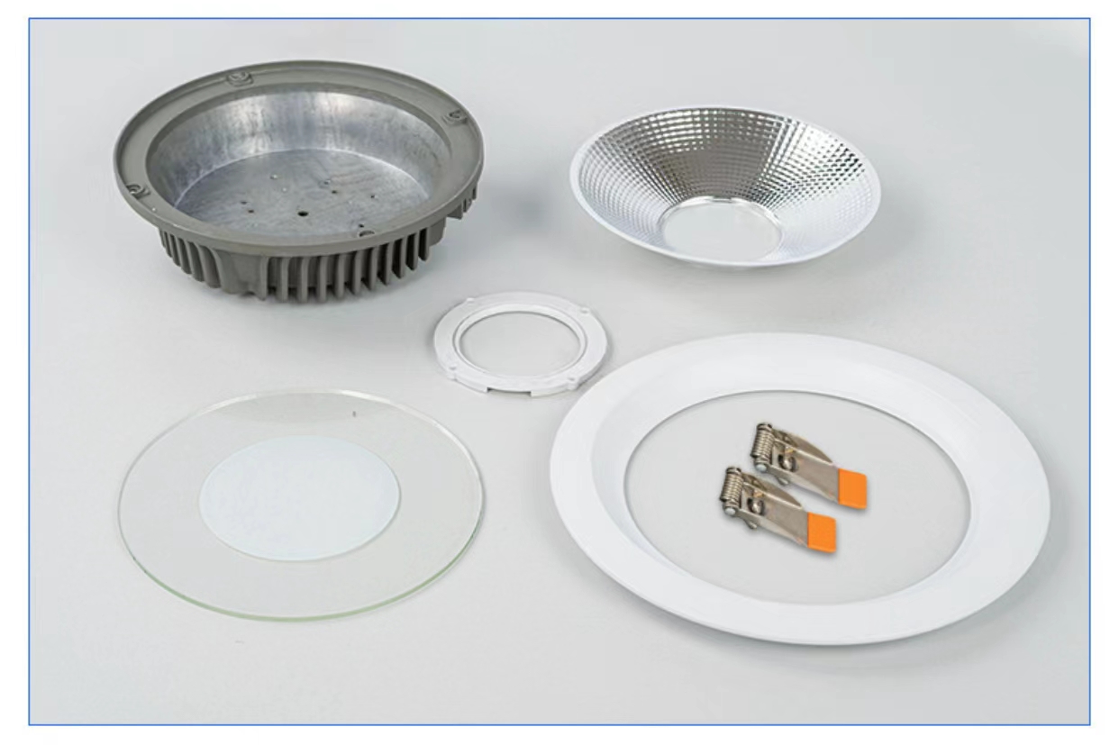 压铸铝材,鳍片散热器,采用多处散热片的方案,达到散热快,性能好,使用寿命长的效果;全部采用钻孔攻牙工艺,减少装配损耗,节省大量人工;喷粉工艺铝材面环,搭配高透光钢化玻璃,铝反光杯,使外观看起来简约又大气,优质光学结构实现产品透光率;90°大光束角设计,照明面积广,光效均匀明亮;采用高强度,加强加硬优质;弹簧,易安装,更牢固;2.5寸7W,3寸10W,4寸15W,5寸20W,6寸30W,8寸40W,多钟规格可选,应用不同场景需求。