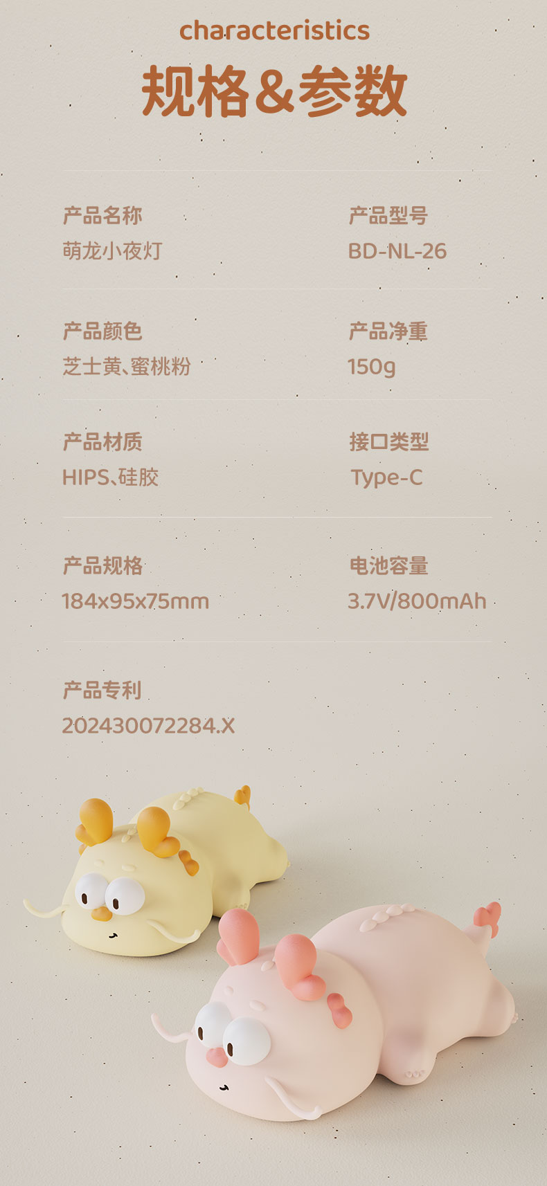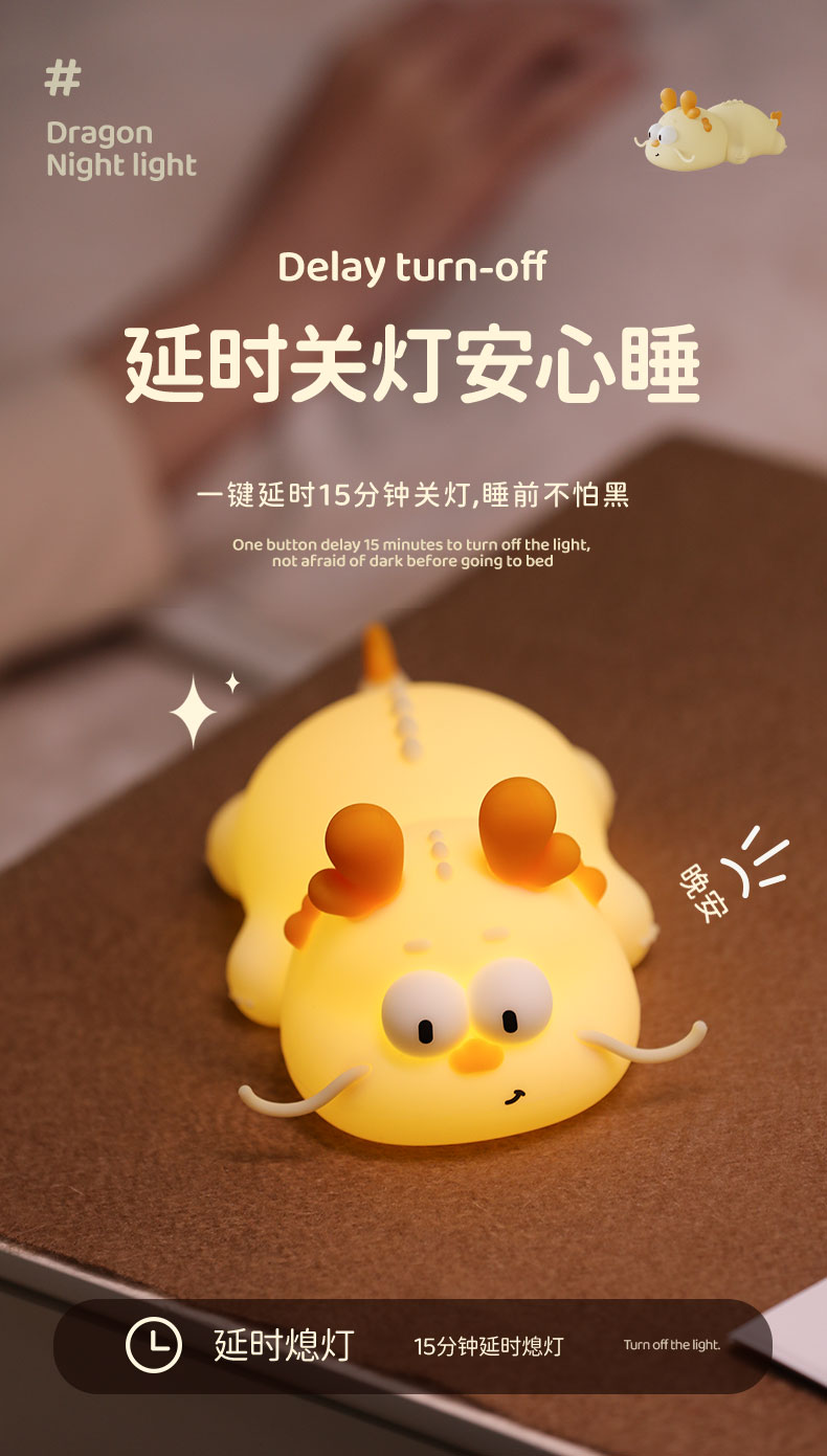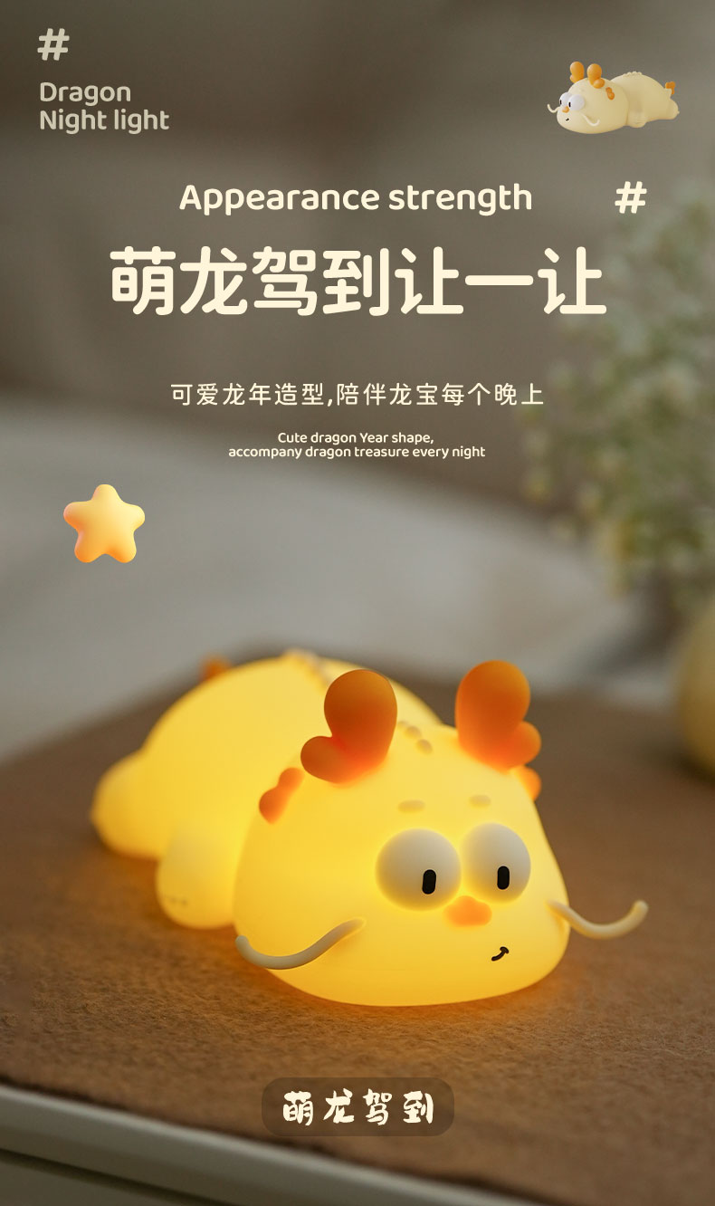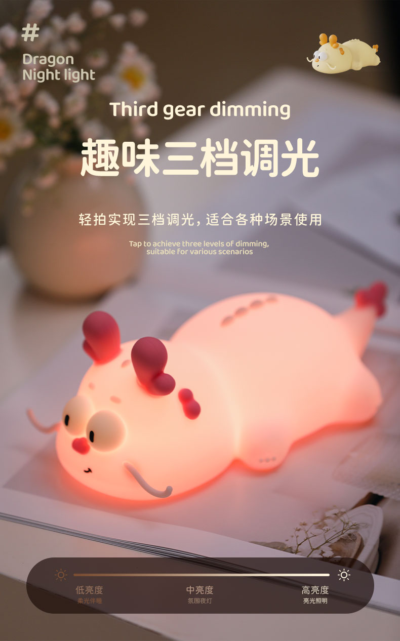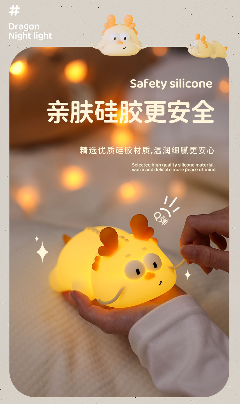 萌龙小夜灯硅胶拍拍灯婴儿喂奶护眼床头灯卧室睡眠灯儿童伴睡台灯