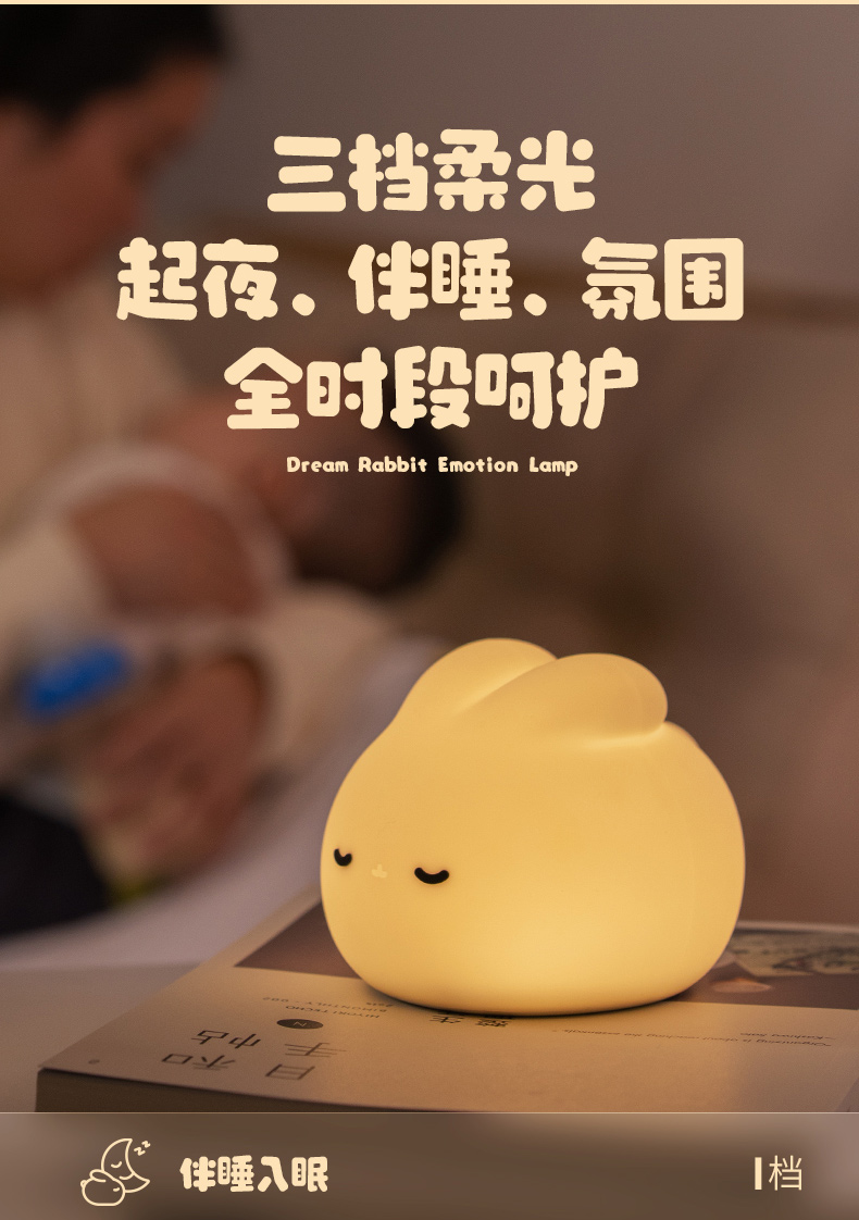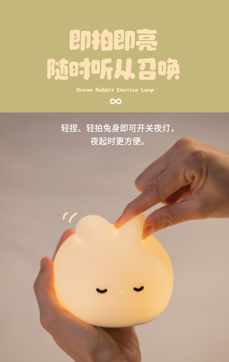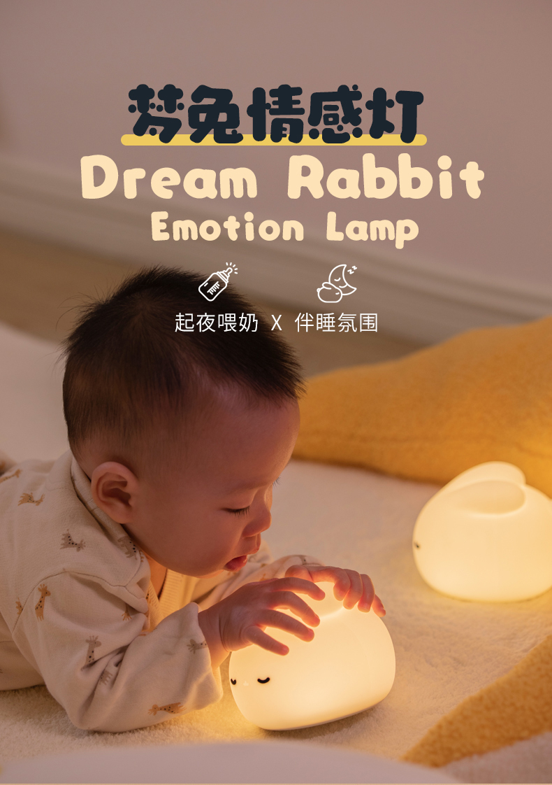 梦兔小夜灯卧室睡眠灯婴儿床头灯喂奶儿童护眼夜晚充电台灯氛围拍