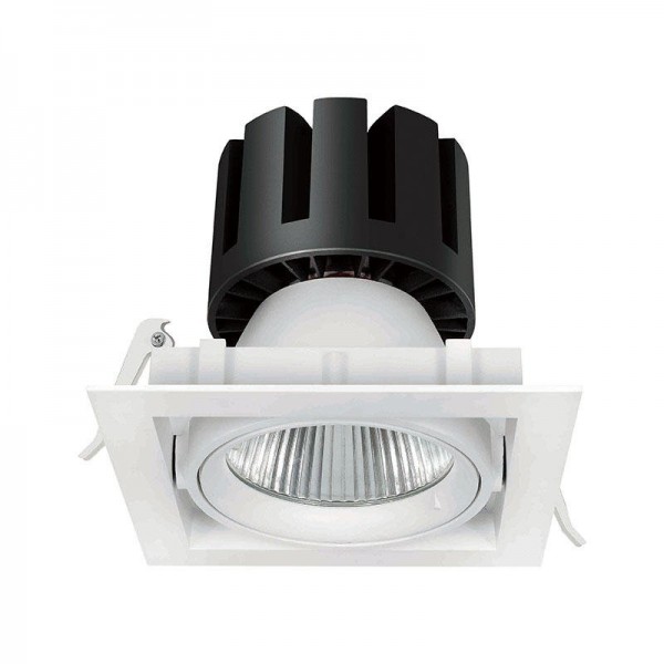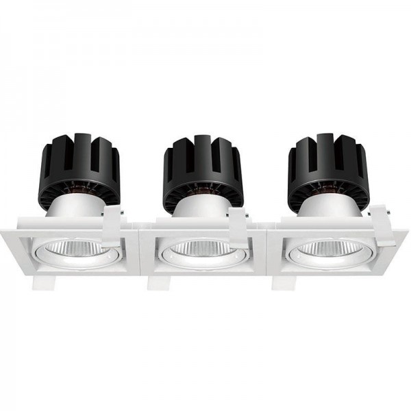 该产品共有1头、2头到3头三种型号,方形框的夹具和点灯头可调,可选择20°/40°/60°三种不同的光束角度供选择,可广泛应用于医院、商店、超市、酒店、餐厅、住宅等不同场所。夹具主体由压铸铝ADC12制成,表面粉末涂有白色、黑色或银色三种不同颜色;COB(Chip-on-Board)技术,效率最高;无多个阴影;节能LED,显色性非常好;binning initial≤3碎石;有3000K、4000K和5000K三种颜色可选;CRI≥80/≥90。可选TRIAC,1-10V可调光或DALI可调光。