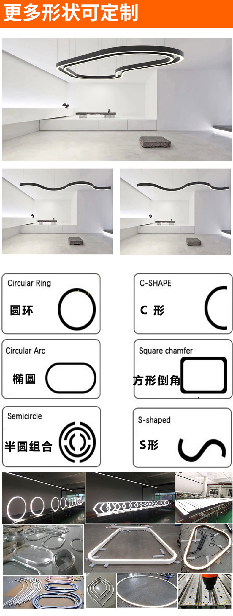 厂家批发吊线灯铝材灯槽铝合金会所美妆店吊线灯led灯线条灯铝