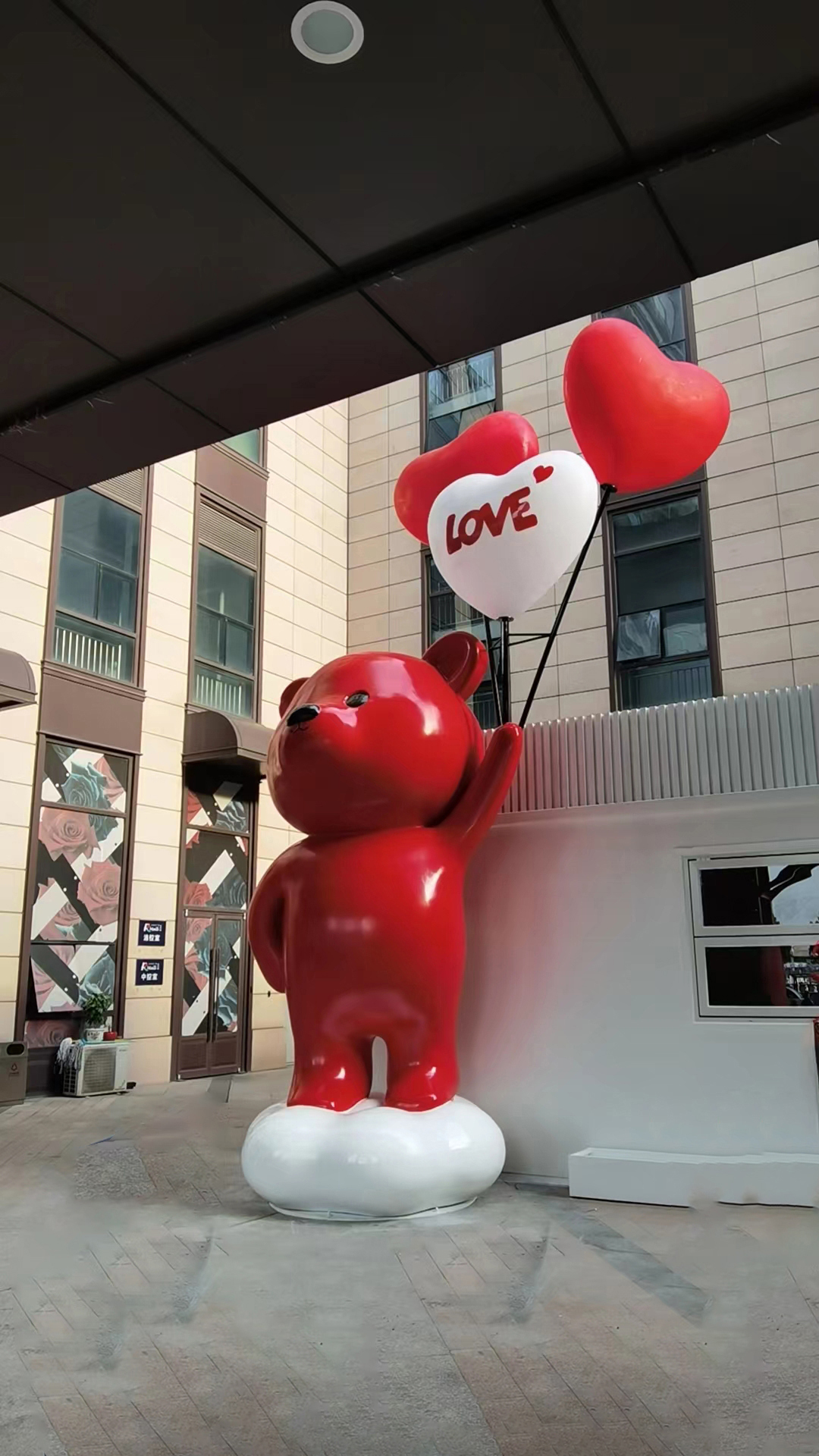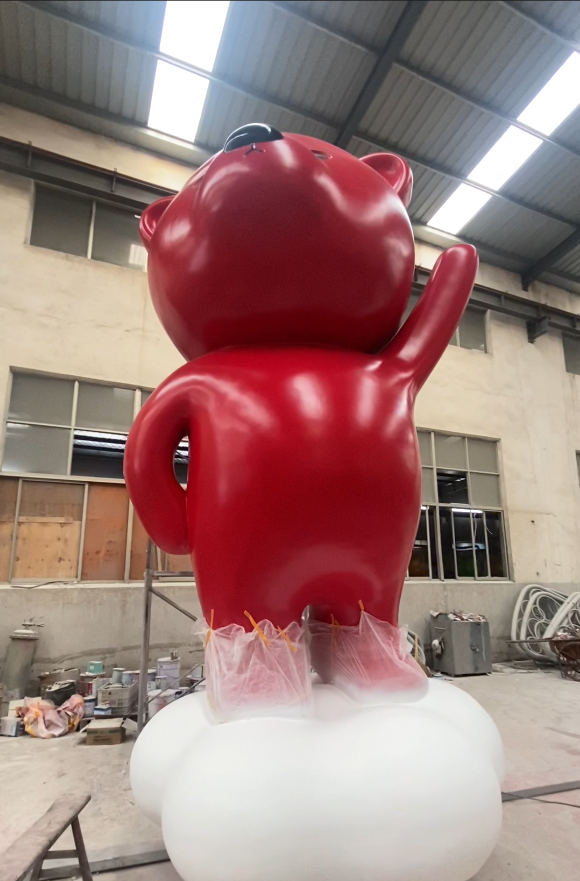 这款红色小熊玻璃钢雕塑充满魅力。可爱的小熊身着红色,手持爱心气球,造型萌趣十足。采用优质玻璃钢材质,坚固且质感好。放置在商业街,能增添温馨浪漫氛围,吸引顾客目光,成为商业街一道亮丽独特的风景线,提升商业空间的吸引力。