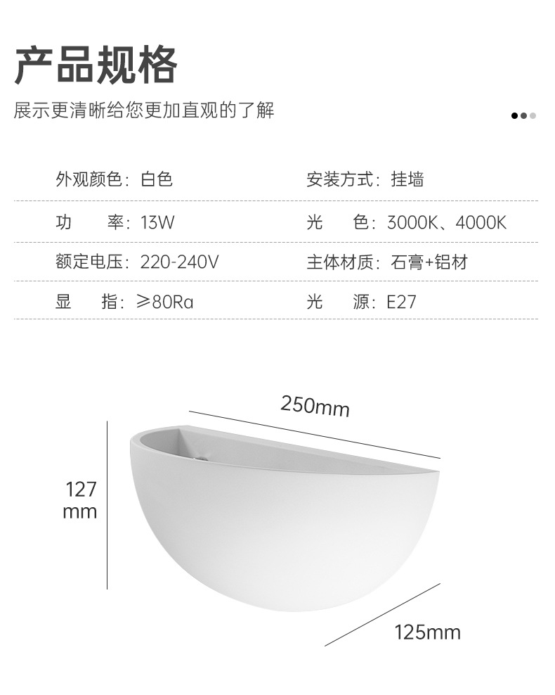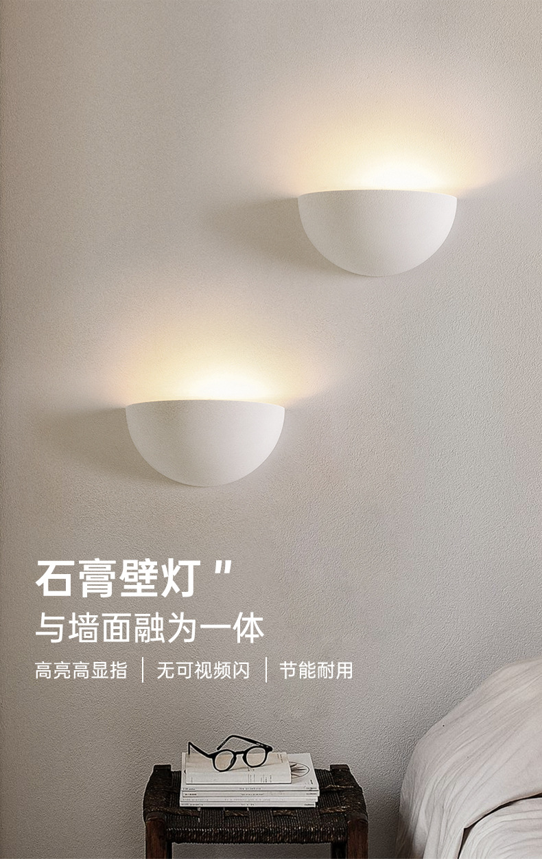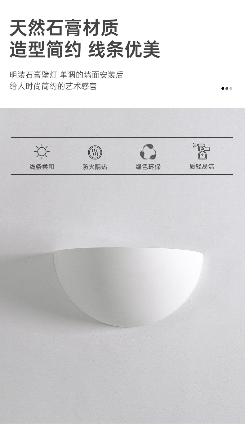 石膏明装壁灯装客厅电视背景墙卧室半球形床头灯