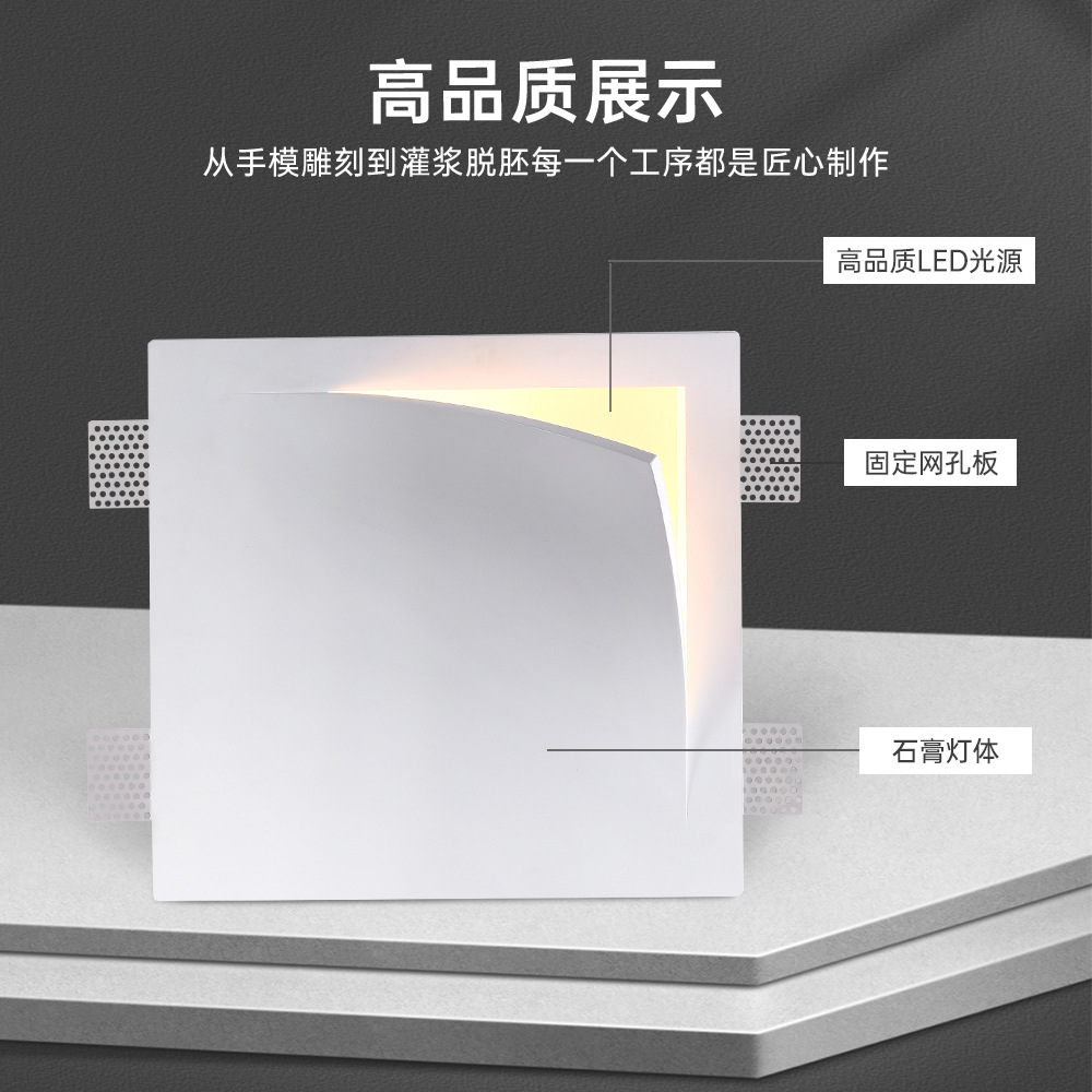 基地嵌入式侘寂风石膏灯客厅过道背景墙翻折页艺术样板房家用壁灯