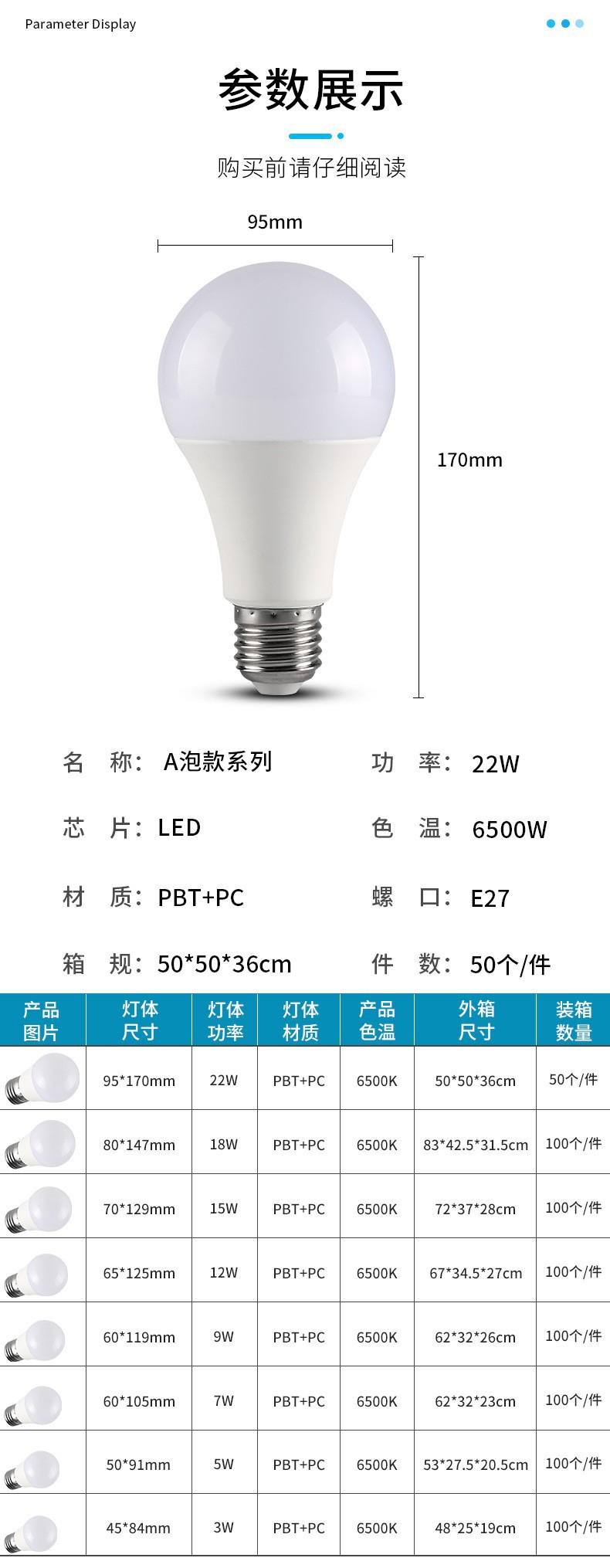 led灯A泡E27螺口白光超亮护眼大功率照明球泡灯