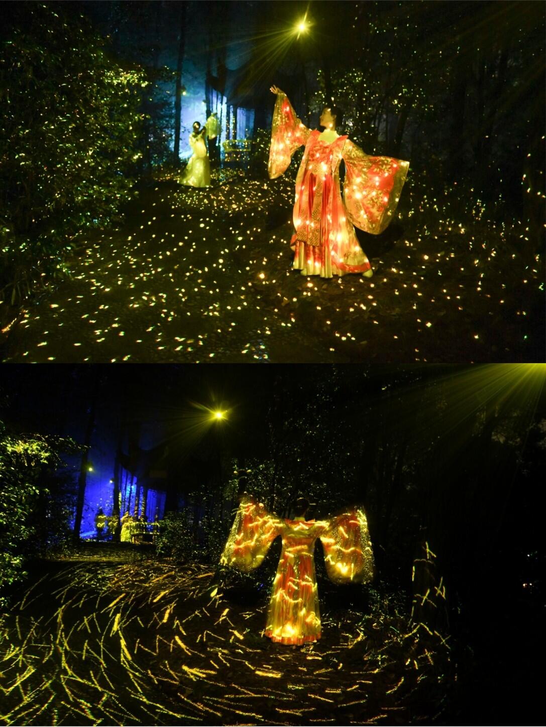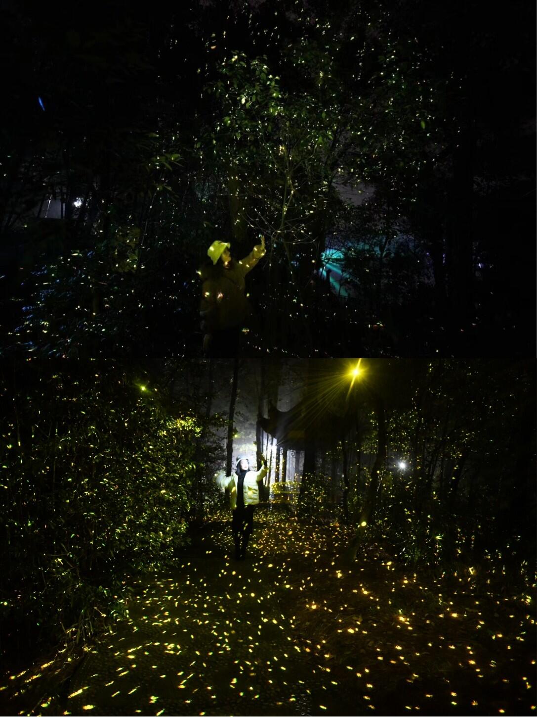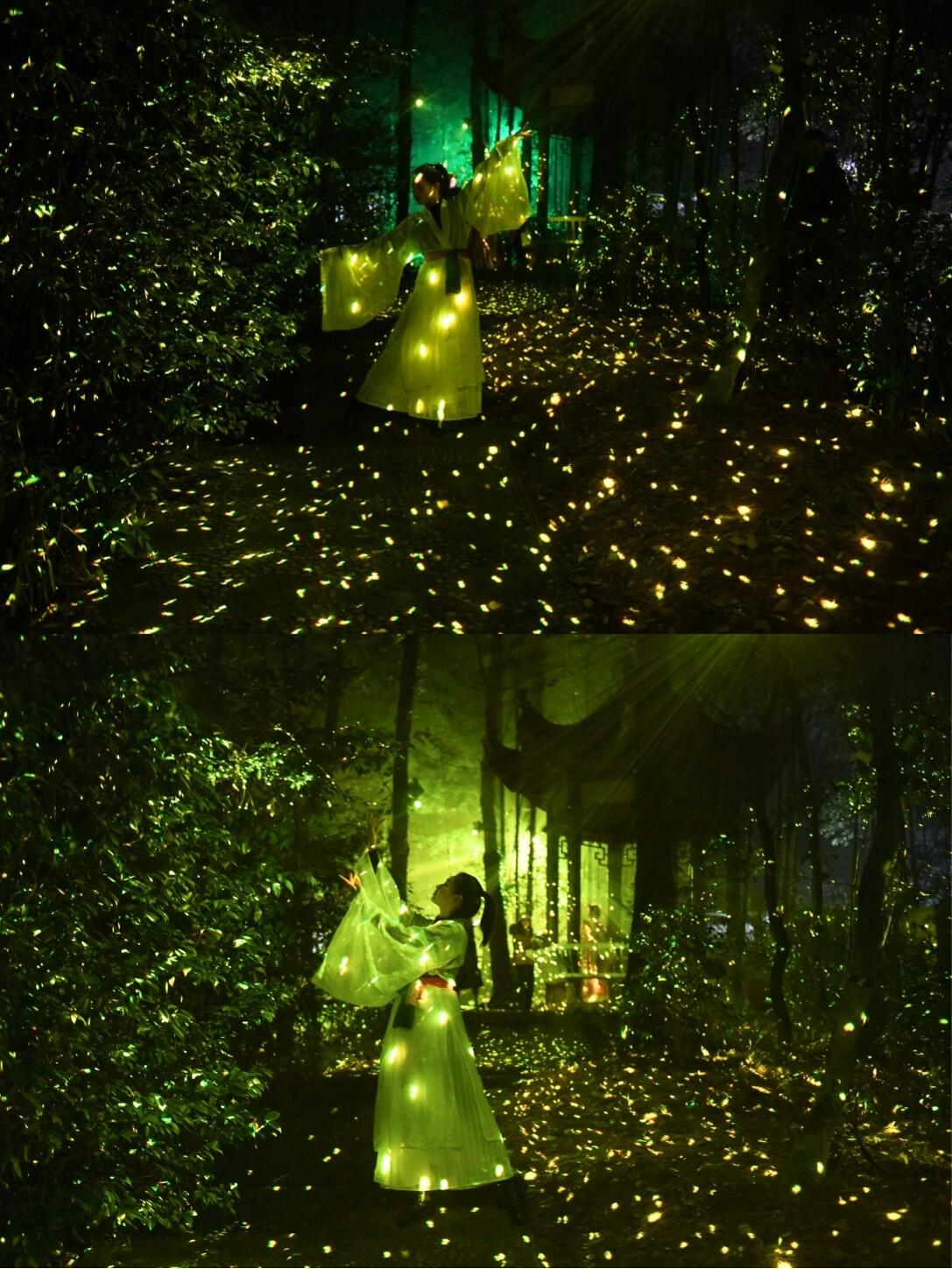 石燕湖旅游区用数百组激光灯在森林中光绘出千万只萤火虫飞舞的场景,目的是呼吁伙伴们关注这种濒临灭绝的动物,不少长沙本地人前来拍照打卡喔,怎么拍都是大片