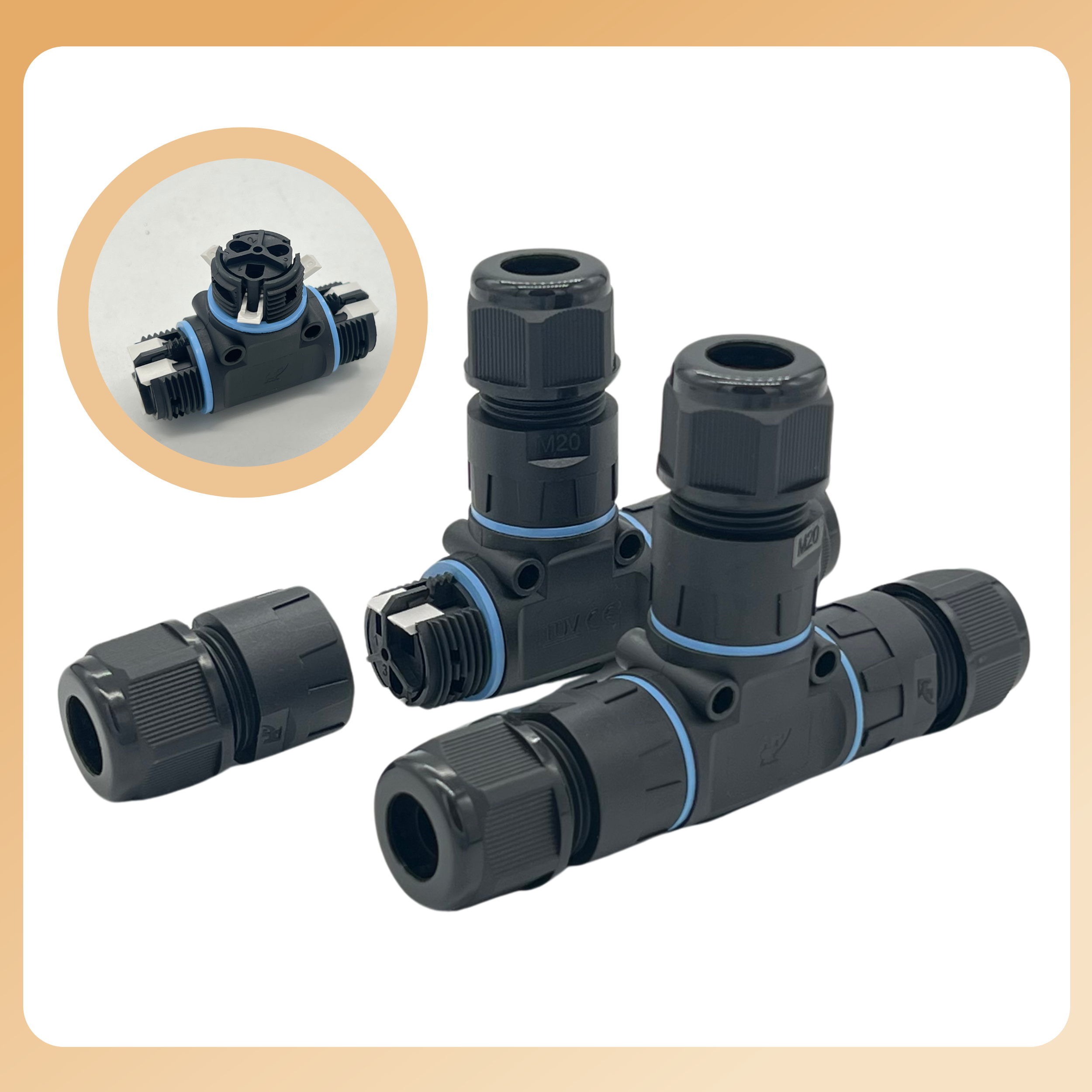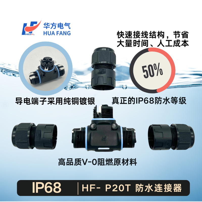 免螺丝3芯三通IP68防水连接器户外led电缆接头快速接线