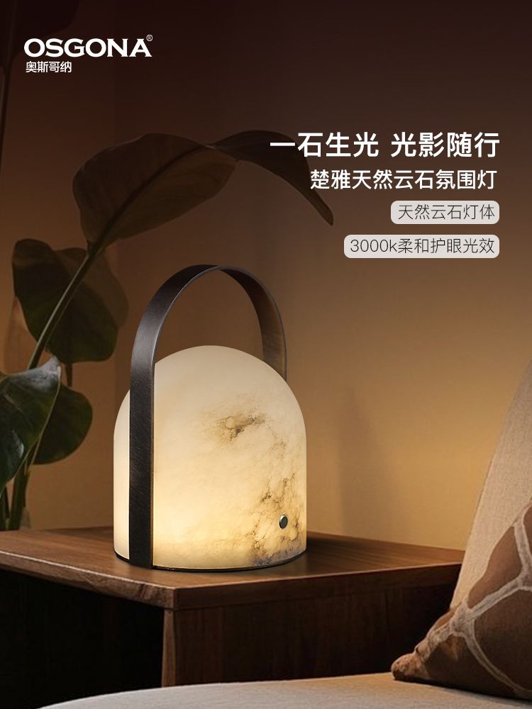 云石LED氛围小台灯可调光充电可移动便捷式 楚雅