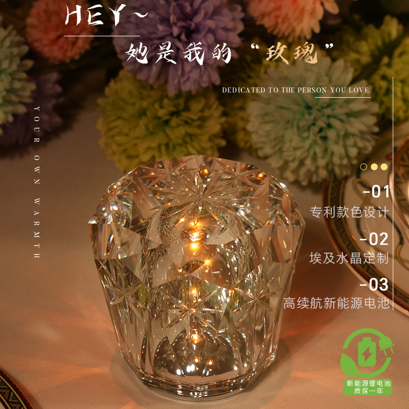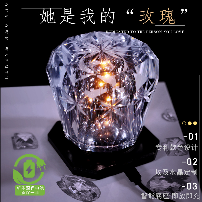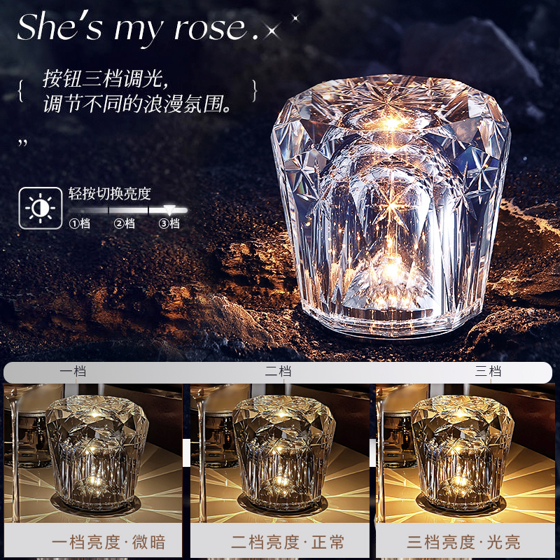 水晶LED氛围小台灯可调光充电可移动便捷式 王子