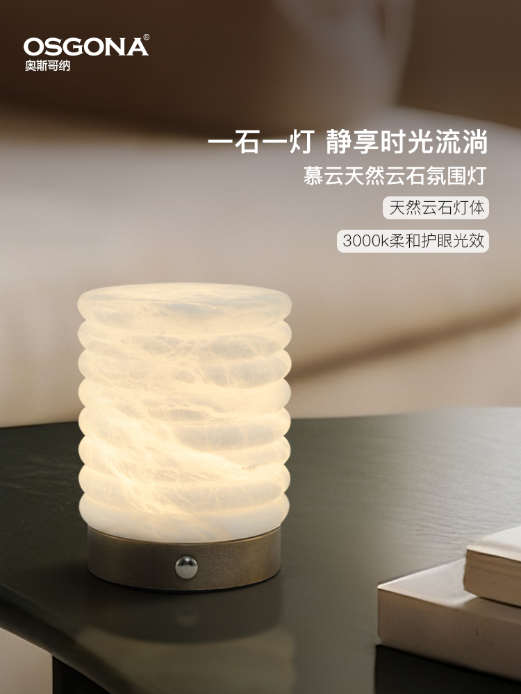 云石LED氛围小台灯可调光充电可移动便捷式 慕云
