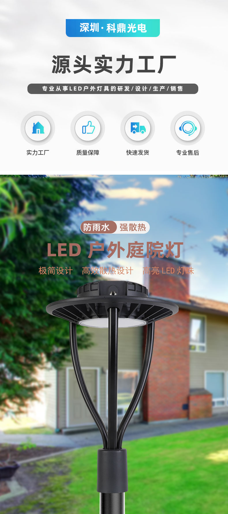 科鼎光电坐落在中国与世界重要进出口贸易基地的深圳市,公司创立于2016年,集设计、研发、生产与销售于一体,并拥有多项自主知识产权和认证,成果转化二十余项。相继获得国家高新技术企业,深圳市专精新企业等荣誉资质。公司主营产品为LED路灯、LED太阳能路灯、市电路灯、智慧路灯、LED投光灯、LED隧道灯、LED工矿灯等户外照明灯具。公司始终坚持”实施科学管理,追求卓越品质,满足客户需求”的质量方针,已通过ISO9001产品质量体系认证,有近百种的产品获得ETL、DLC、SAA、CE、RoSH、IK08/IK10等国内外相关认证。现拥有一支素质过硬、技术全面、高效、精湛的人才队伍。以“安全环保、科技创新、客户满意”为管理方针;以客为本,以质求存,以优取胜,以快为强的为经营理念。全力以赴为客户提供满意的服务,赢得了国内外客户一致肯定。