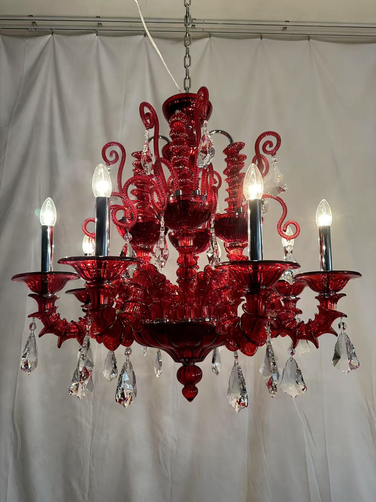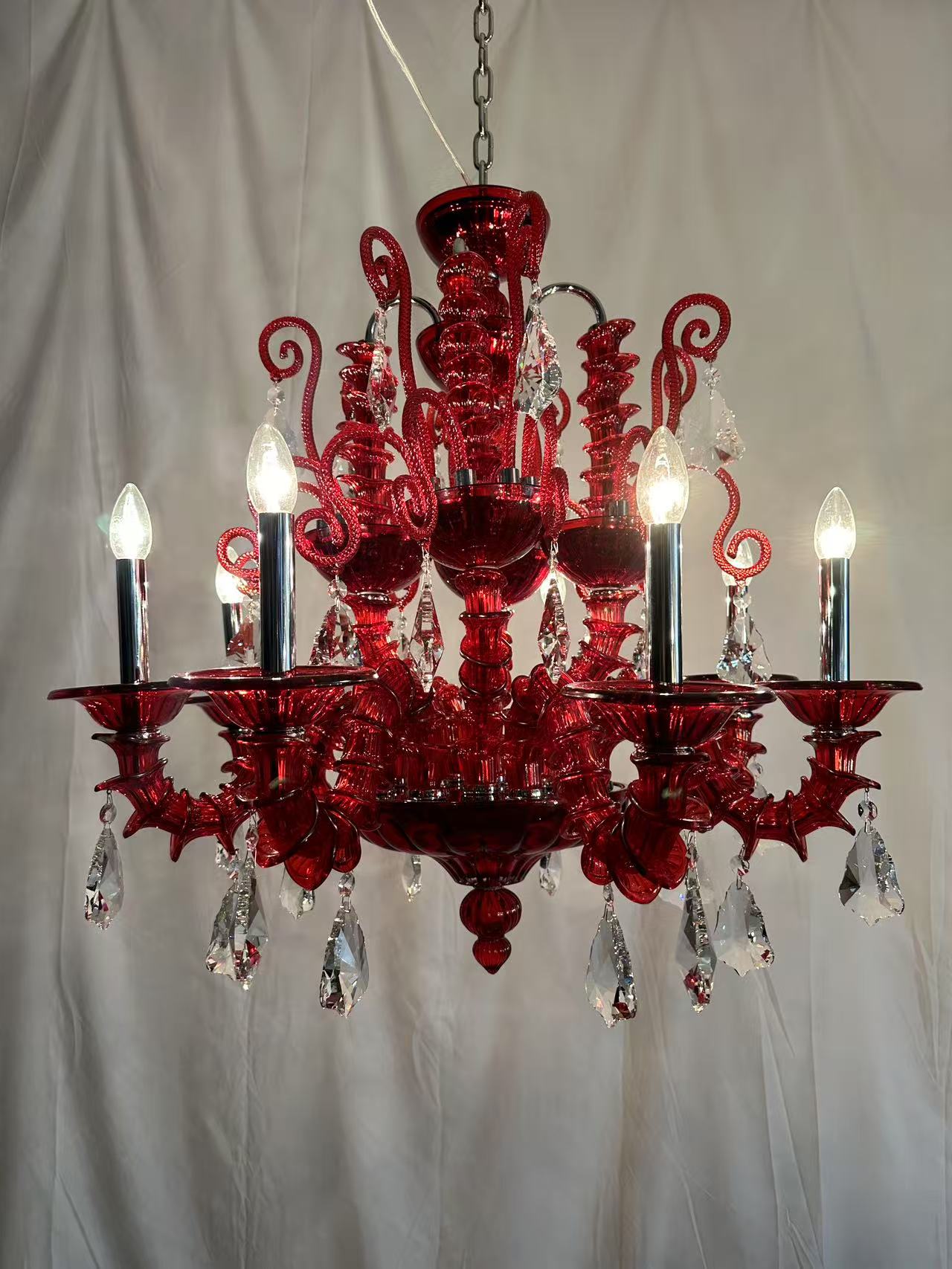 铭佳轻奢水晶吊灯 红色吊灯
